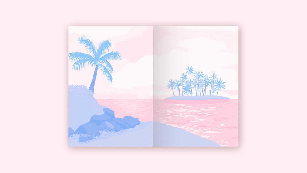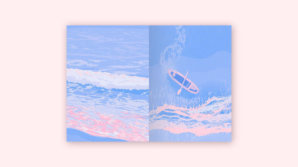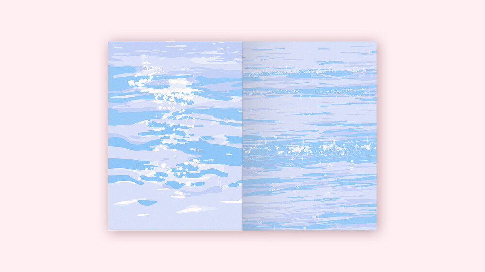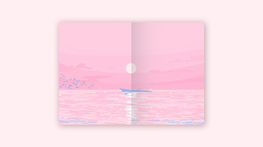 제가 그리는 바다빛은 푸른색이 아닌 부드러운 선홍빛 입니다. 석양이 비춰 붉게 물들어가는 바다의 모습에서 영감을 받아 작은 이야기를 그려내었습니다. 여기 이 섬의 바닷가의 모습은 어디선가 본듯하지만 따스하고 부드러운 바다의 모습으로 가득합니다. 나의 바다와 함께 여러분 마음 속 열망하던 섬으로 떠나보세요.