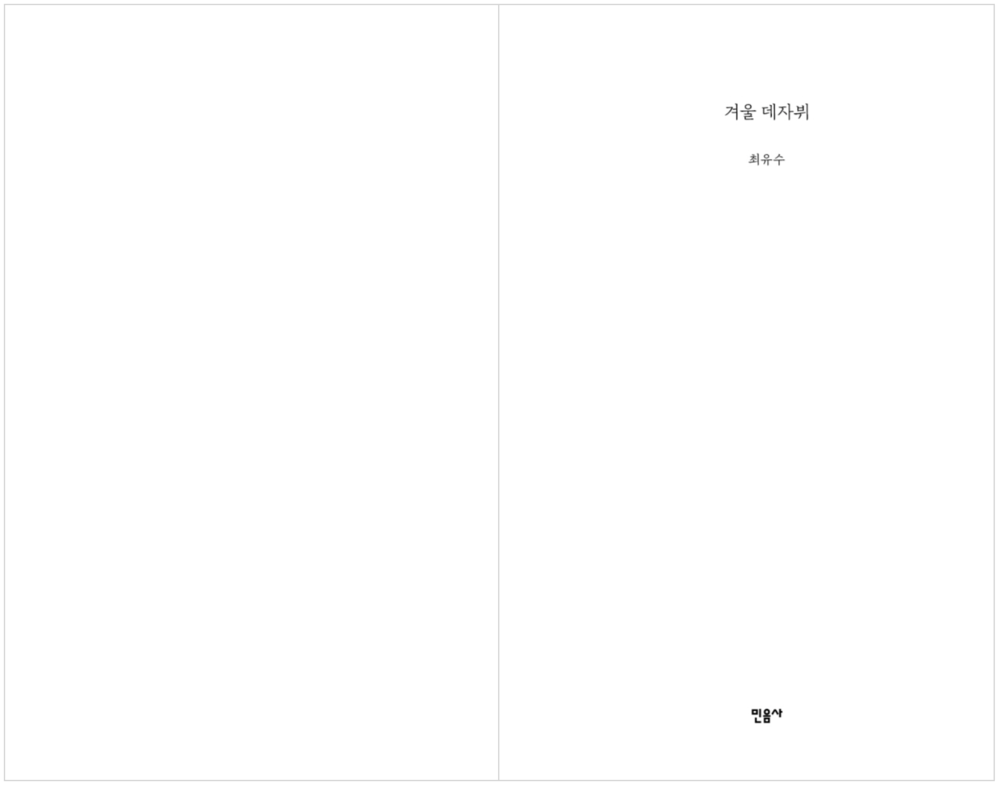 최유수는 눈으로, 렌즈로 자연을 담는다. 찍은 날짜가 표시되지 않은, 가끔씩 포커스가 아웃된 사진이 그대로 『겨울 데자뷔』에 실려 있다. 쪽수도 없이, 캡션도 없이, 어디선가 떨어져나온 듯한 진흙과 고목과 눈과 강물의 조각은, 우리 독자들을 저자가 걷는 길로 데려간다. 산맥에서 호수로 흐르는 물처럼, 여행자의 시선과 감상이 우리에게 부드럽게 흘러 내려온다. 짧거나 길거나 나른하거나 외치는 듯한 문장 속을 따르던 우리는 어느덧, 바로 이 장면을 오랫동안 잊을 수 없겠다고 생각하는 여행자의 신분이 된다. 현재를 벌써부터 그리워했던 여행자의 조급함과 기쁨을 현재형 시제로 전달받으며, 당신 역시 도착한다. 그리고 알게 된다. “이곳이 바로 그곳이라는 걸.”