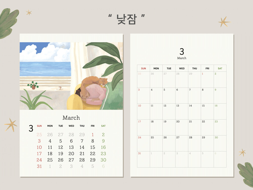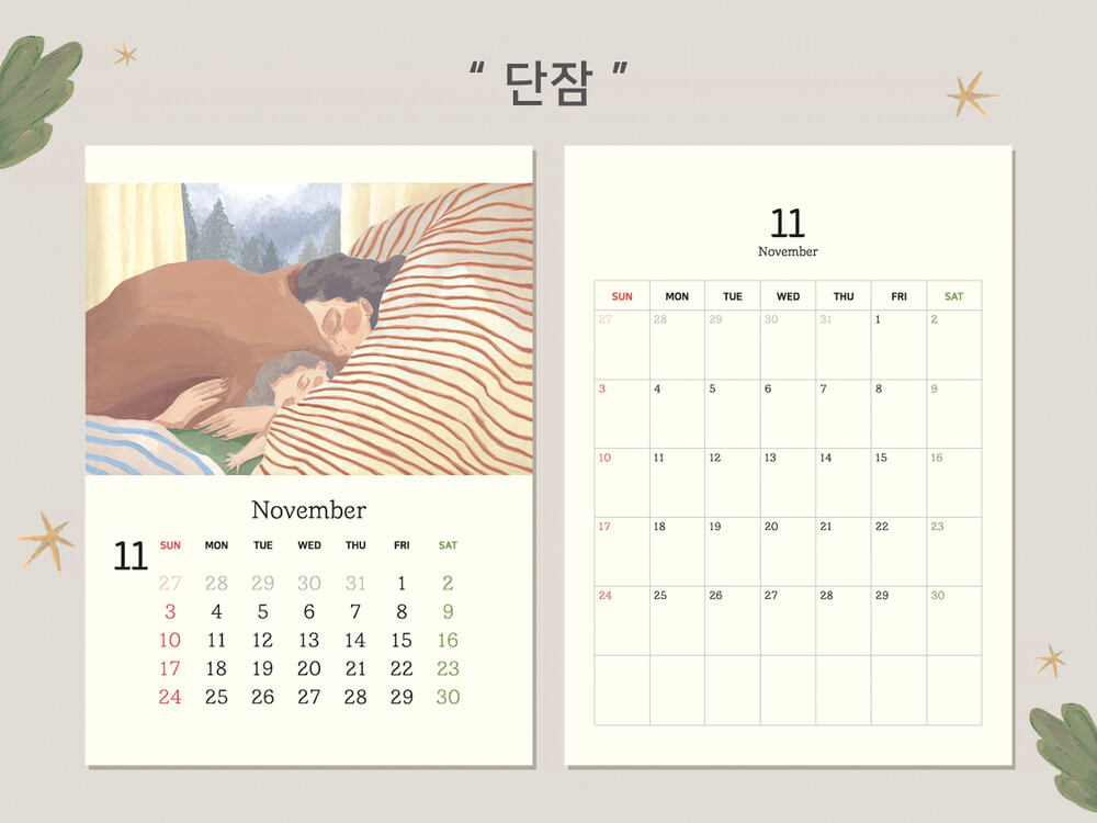 2018년부터 2021년 까지 매년 저의 그림들로 가득 채워진 달력 제작을 해오다가 출산과 육아로 잠깐의 공백을 가진 후,