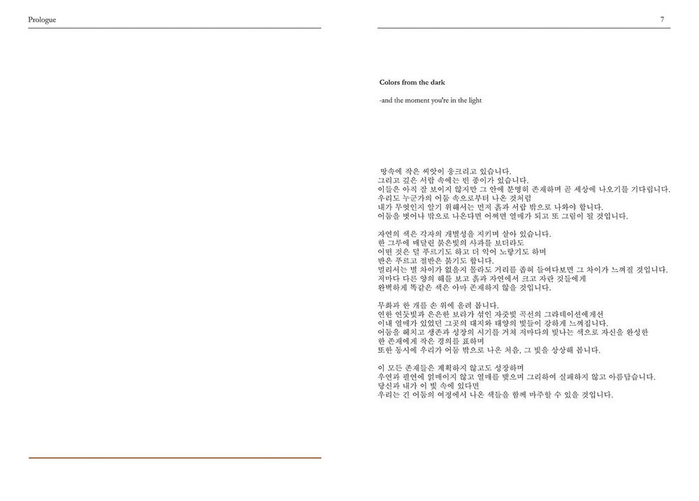 무엇이 들어있는지 가늠할 수 없는 다소 캄캄한 표지 속에는 미련 많은 어떤 사람 하나가 서랍 속 어둠에서 꺼내놓은 오늘의 또 어떤 색들이 그 자리에서 잔잔하고도 묵묵히 빛을 내고 있을 것입니다.