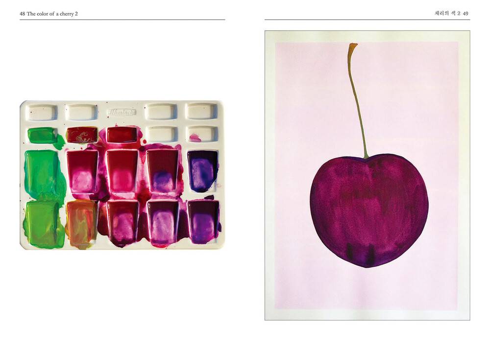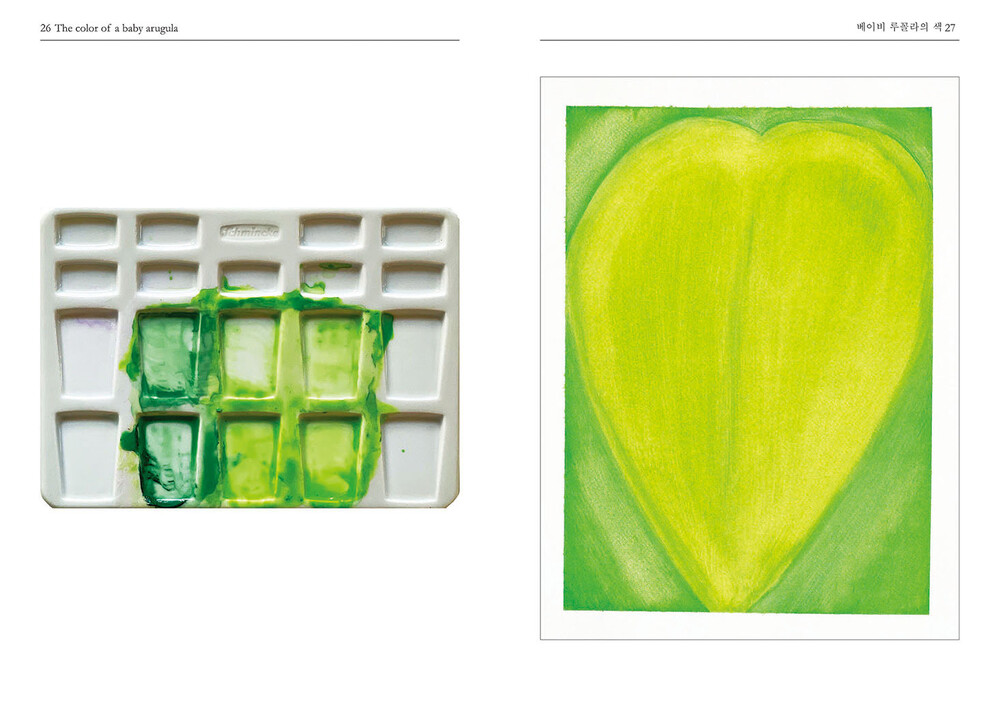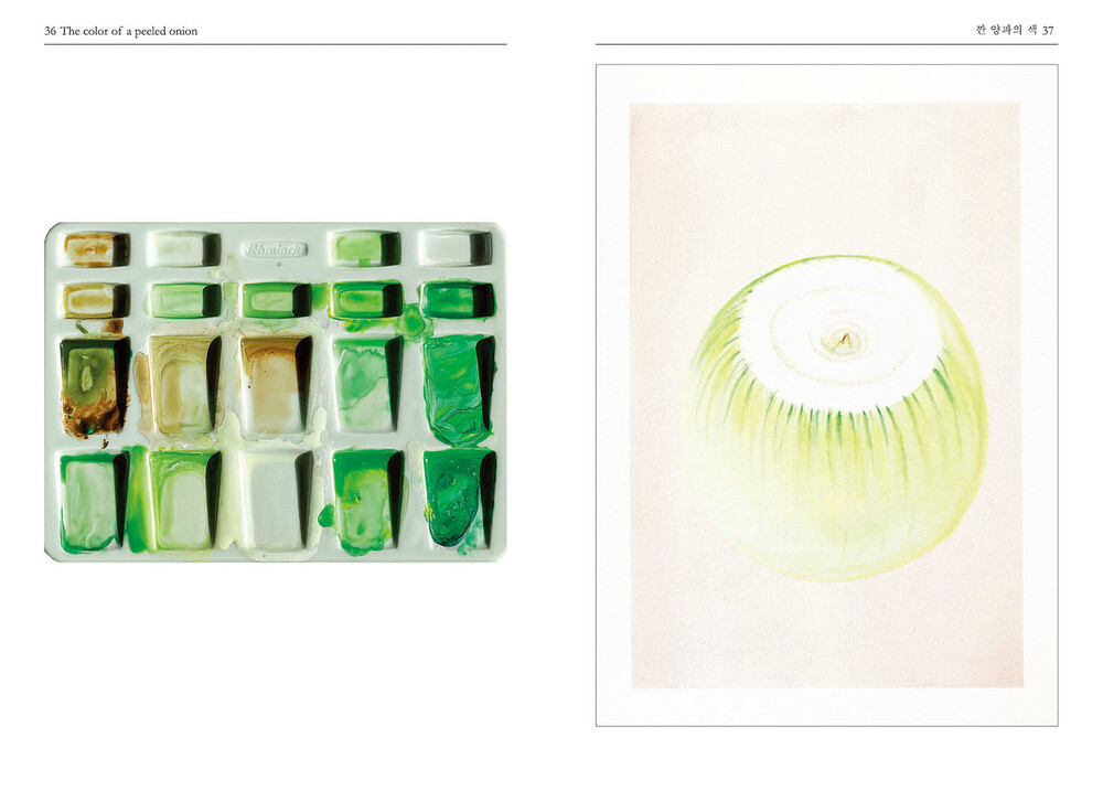 파레트 위에 고스란히 포개어진 물감들의 레이어는 마치 제게 어린 시절 누군가와 만나고 헤어지는 그런 경험의 기억들을 떠올리게 하는 것만 같습니다. 물에 씻겨 내려가서 고요하게까지 느껴지는 유백색 도자기 파레트는 두꺼운 물감의 색들로 빼곡하고 분주히 흔적이 남았다가 마치 누군가 있었냐는 듯 하얗게 사라지기를 반복합니다.