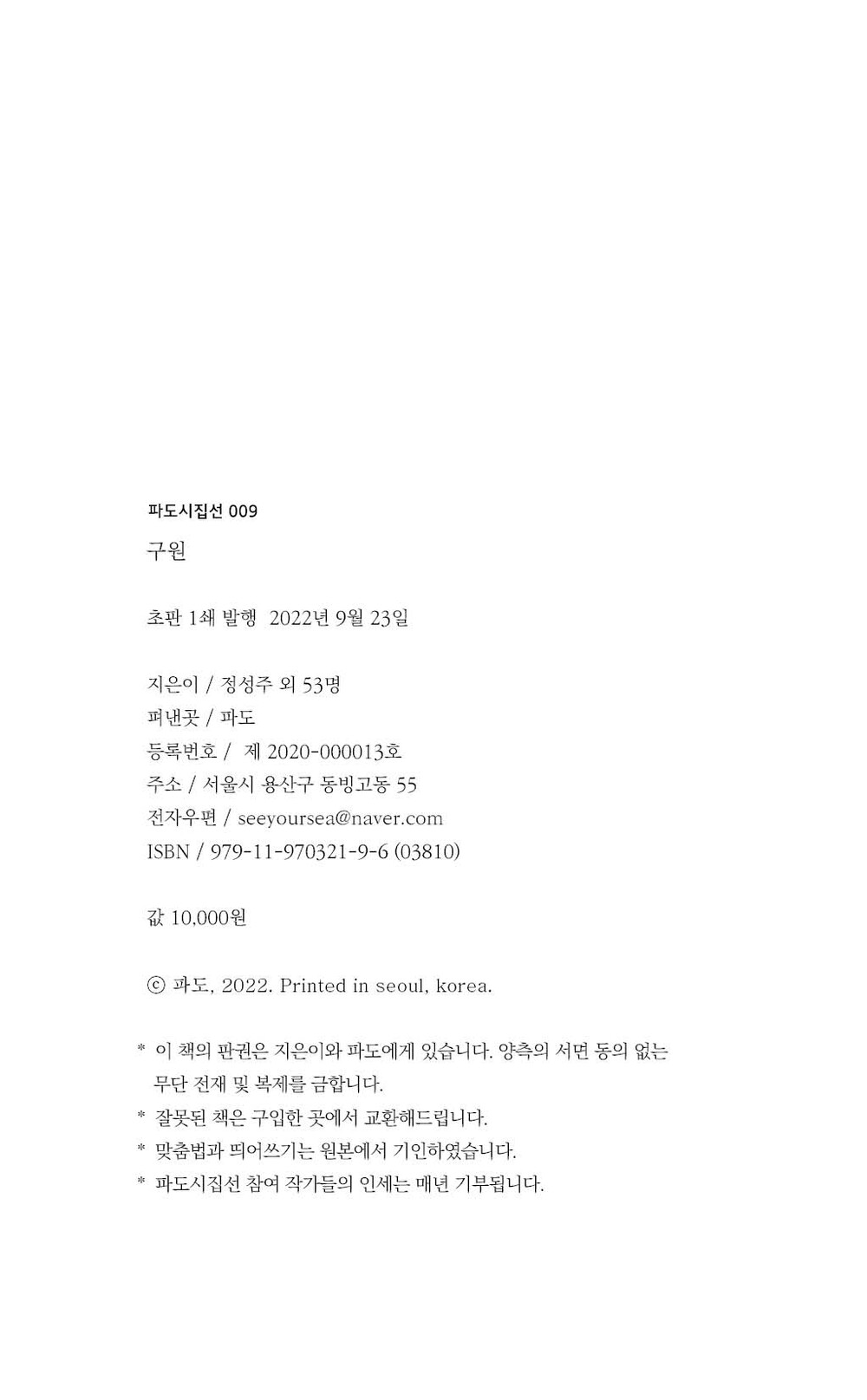 * 파도시집선의 마지막 페이지는 항상 비워져 있습니다. 당신의 의미를 채워 온전한 시집으로 완성시켜주세요.