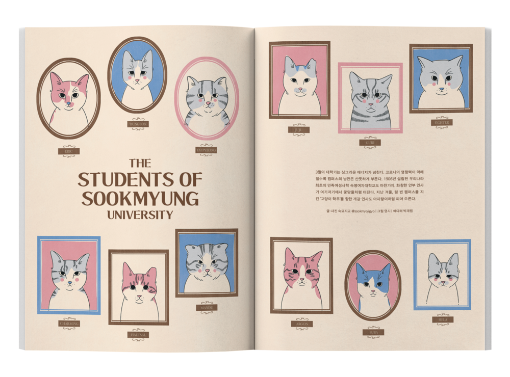 Vol.6 인터뷰를 하며 가장 많이 던진 질문이다. 이야기를 한 데 모으니 멜로우한 삶을 사는 강아지 ‘멜로우’부터 종로를 지키는 ‘두한이’, ‘집사’라는 이름의 고양이까지. 저마다의 사연과 더불어 이름표의 빈칸을 가득 채우고 있었다. 비로소 가족이 되고, 아직은 모든 게 낯선 그들의 순수한 눈망울을 바라보며 누구보다 좋은 이름을 지어주겠노라 고민한 그 때처럼, 온 마음을 다해 아이들의 이름을 불러보자. 그 순간 재빠른 몸짓과 함께 발을 구르며 눈 앞으로 달려와 꽃 같은 미소로 우리 마음을 흔들어 놓을 테니.