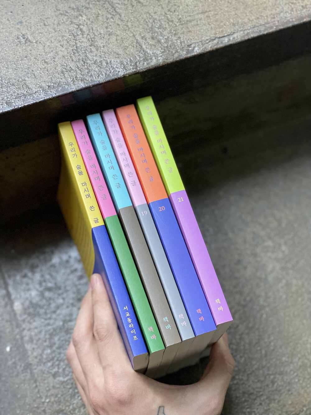 <우리가 술을 마시며 쓴 글>은 책과 술을 사랑하는 사람들을 위한 책으로, 2016년부터 올해까지 총 여섯 권이 출간되었습니다.