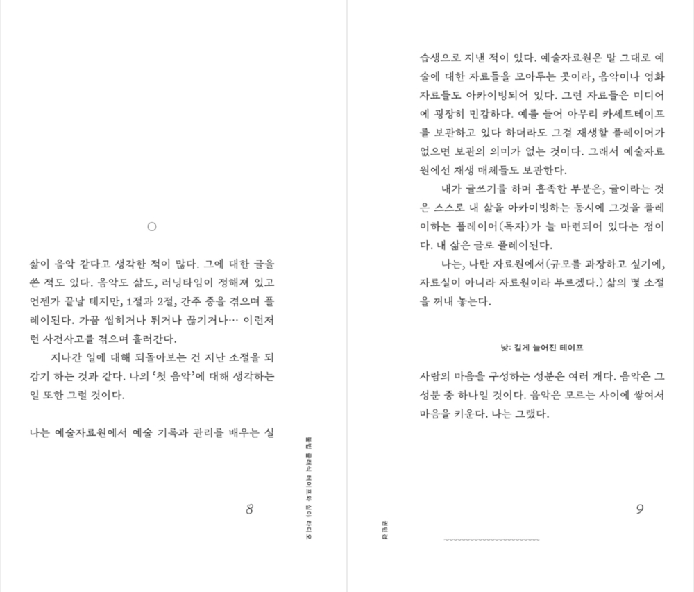 삶이 음악 같다고 생각한 적이 많다. 음악도 삶도, 러닝타임이 정해져 있고 언젠가 끝날 테지만, 1절과 2절, 간주 중을 겪으며 플레이된다. 가끔 씹히거나 튀거나 끊기거나….