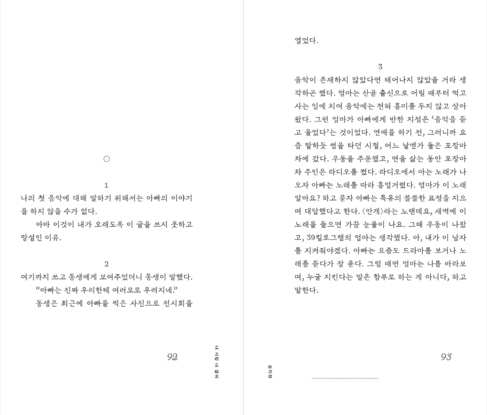 아빠는 내가 태어나자마자 나를 둘도 없는 친구로 여겼다. 산부인과에서 나를 데려와 아빠가 제일 먼저 한 일은, 헤드폰으로 자신이 제일 좋아하는 음악을 들려준 것이었다. 그 장면은 아직 사진으로 남아있어, 나는 헤드폰에서 어떤 음악이 재생되었을지 상상해 보곤 한다.