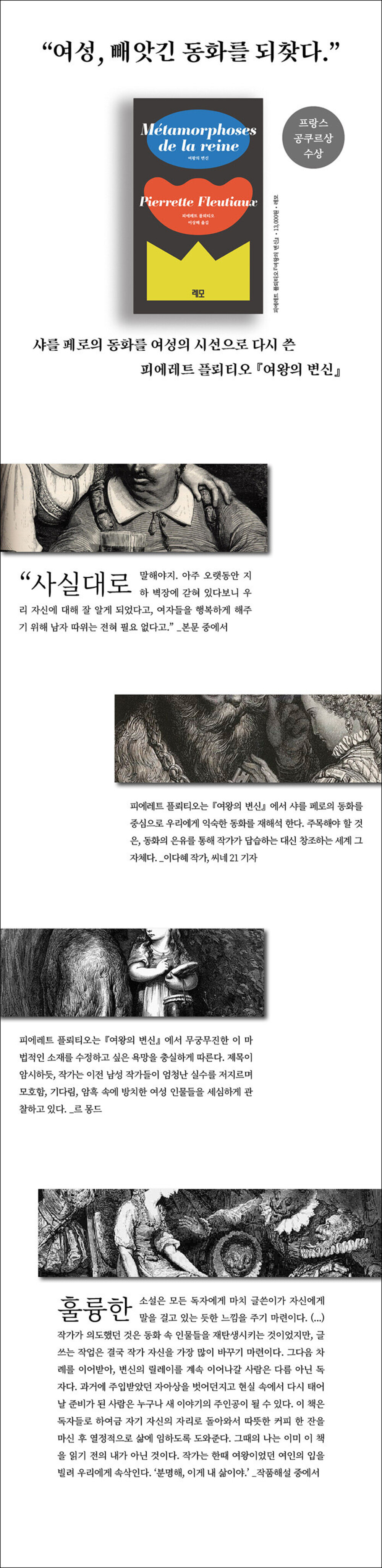 『여왕의 변신』은 발간 당시 프랑스에서 큰 화제를 불러일으켰고, 문단에 신선한 충격을 주며 그해 공쿠르상을 수상했습니다.