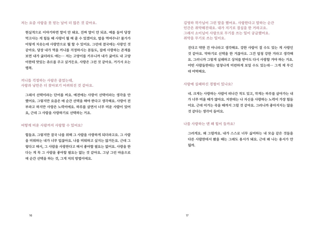 사랑을 외면하며 살아가는 것이, 그렇게 사랑이 사라진 현실을 좀 더 살아보는 것이제게는 무의미했고, 또 제법 숨이 막혀왔기 때문입니다.