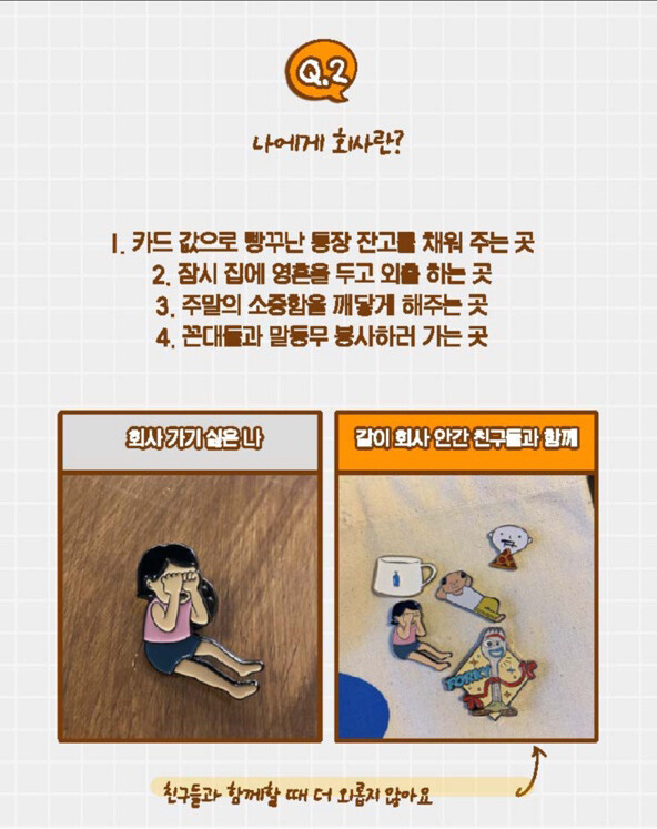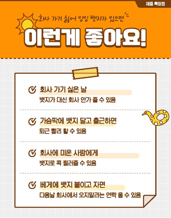 회사 가기 싫어 잉잉 뱃지가 있으면 이런게 좋아요!