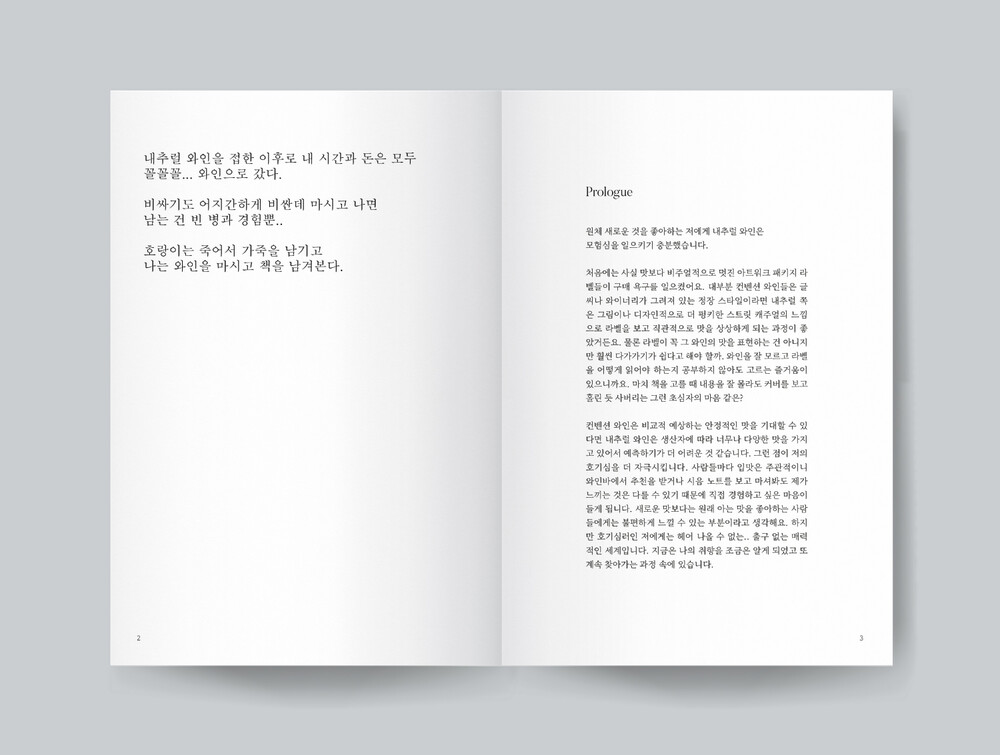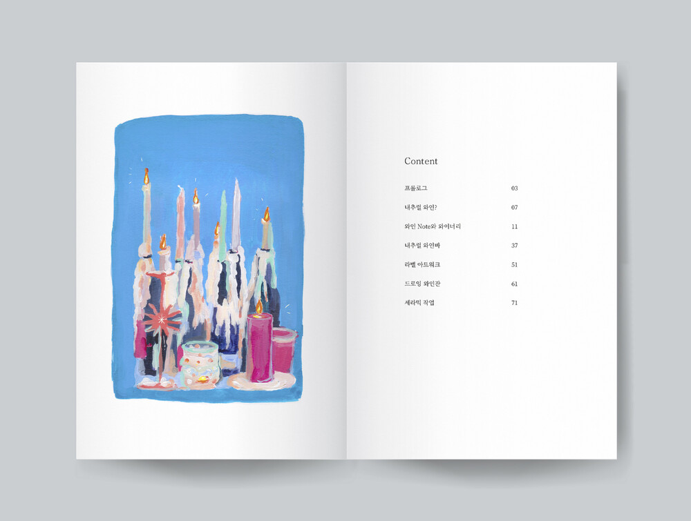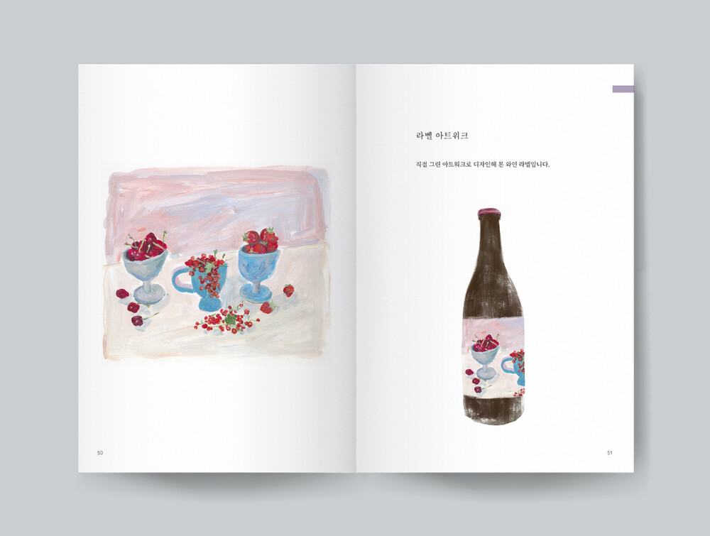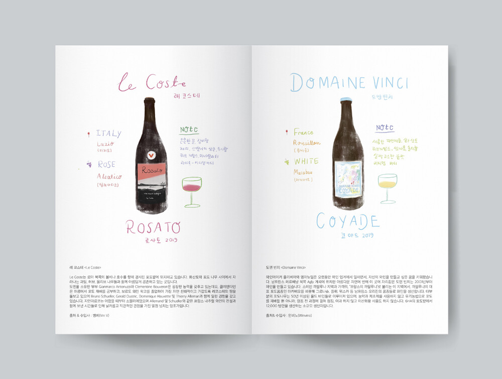 간단한 시음 노트와 와이너리 이야기, 다녀왔던 내추럴 와인바, 직접 디자인해 본 라벨, 세라믹 작업 등이 수록되어 있습니다.