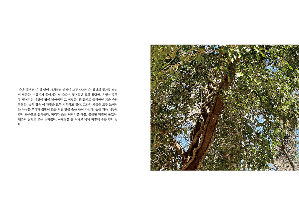 그래서 숲을 바라보았습니다. 그동안 발견하지 못했던 나의 마음 조각들을 찾으며 천천히 걸어갔습니다. 이 여정을 여러분에게 전하고 싶습니다.