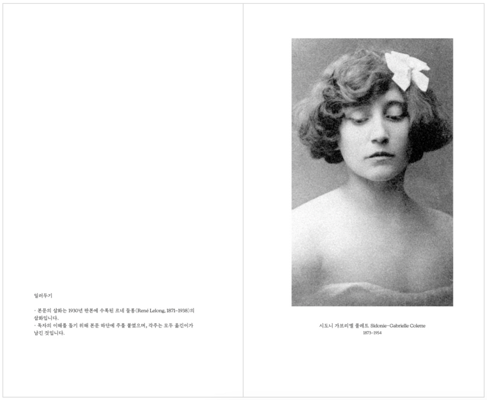 콜레트는 아마도 ‘콜레트’라는 단일명(名)으로 알려진 유일한 여성 작가일 것이다. 그녀는 언제나 그리고 오직 콜레트다. 시도니 가브리엘 콜레트는 어떻게 단지 콜레트가 되었을까. 그녀의 첫 소설은 아이러니하게도 그녀의 남편 필명인 ‘윌리’로 출간된다. 그녀의 삶은 온전히 자기 이름을 얻기 위한 혹독한 도전이었다. , 프랑스 작가들의 유례없는 사랑을 받아온 작가를 감싸고 있는 것은 비옥한 생산성, 매혹적인 기질, 마음의 신비에 천착하고 자신을 전혀 감추지 않고 자기 이야기를 쓰려는 그 열망이었다. 콜레트의 모든 작품은 온전히 콜레트다. 콜레트의 수많은 얼굴이 그의 작품 속에 있다. 그렇게 콜레트와 그녀의 작품은 하나가 된다.