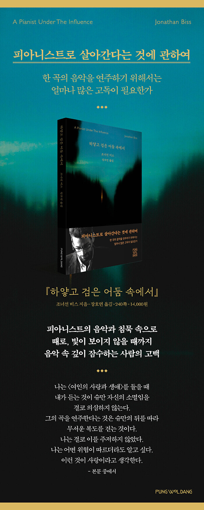 피아니스트 조너선 비스가 피아노 음악에 대해 쓴 책으로, ‘음악과 삶’의 관계를 느끼게 해준다. 조너선 비스가 몇 년에 걸쳐 전자책으로 각각 출간한 세 편의 글을 모은 책으로, 종이책으로는 세계 최초로 출간되었다. 시간 순으로 배열한 세 편의 글을 읽다 보면 그의 내면이 조금씩 더 무르익는 모습을 바라볼 수 있다. 음악과 삶에 대해 그가 말하는 모습은 점점 겸손하고 담담해진다. 다다를 수 없는 경지를 사랑하고 그곳을 향해 조용히 다가가는 사람이 가진 기품이 글 안에 맴돈다.