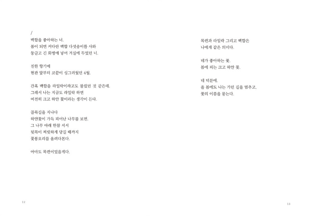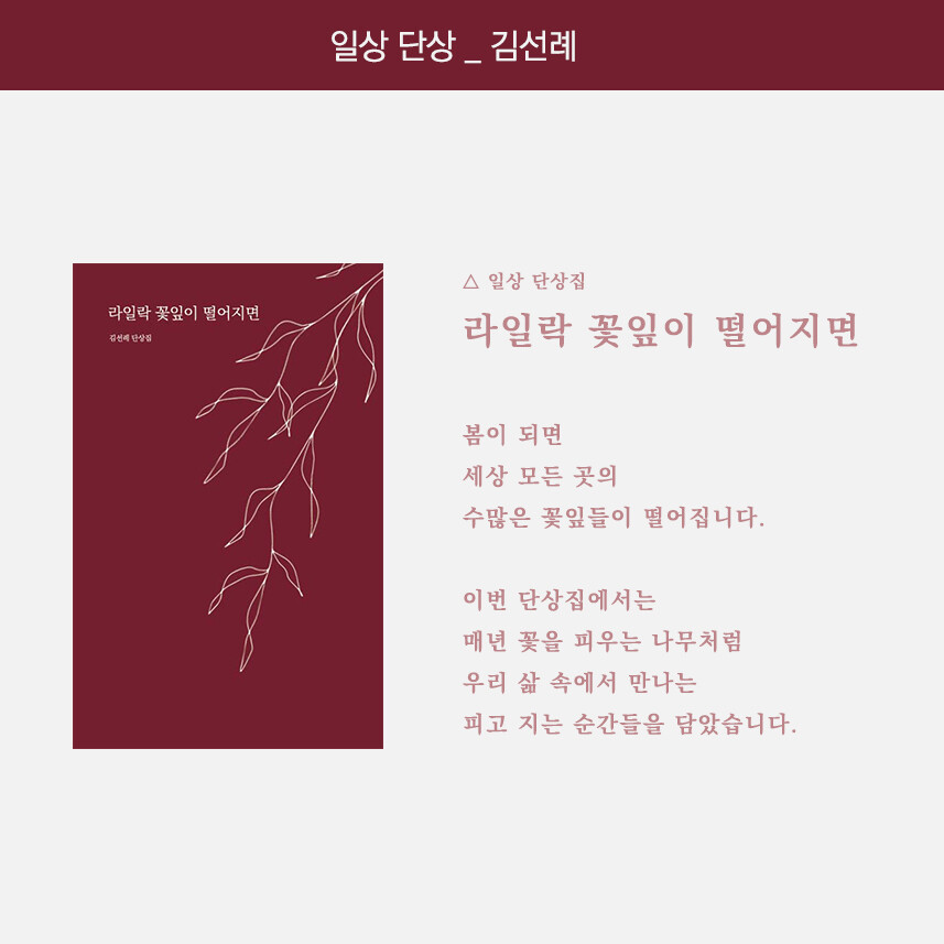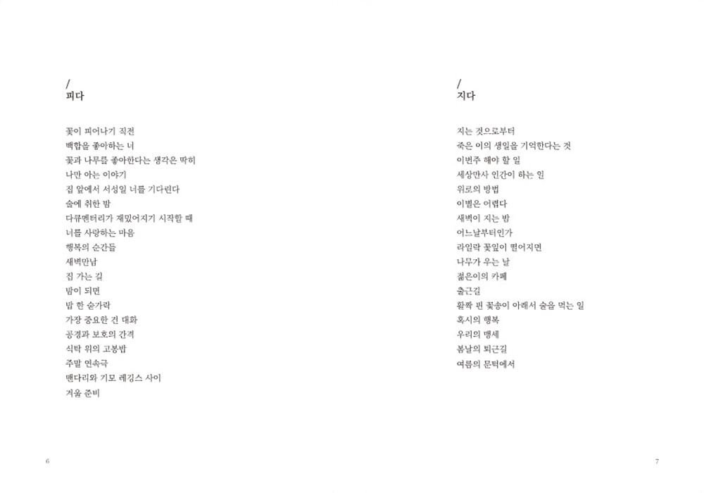 이번 단상집에서는 매년 꽃을 피우는 나무처럼 삶 속에서 만나는 피고 지는 순간들을 담았습니다.