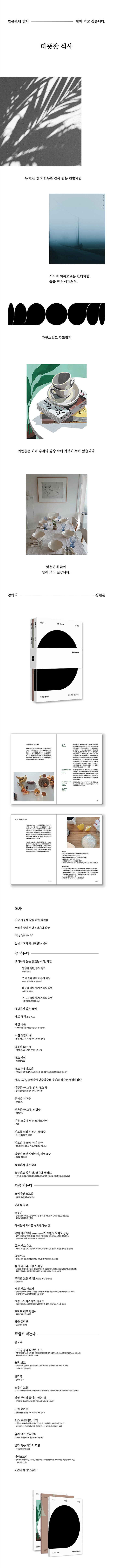 <따뜻한 식사>는 ‘늘 먹는다’, ‘가끔 먹는다’, ‘특별히 먹는다‘ 총 3권으로 구성됩니다. 아티스트 손은경의 일러스트 작품과 아티스트 신기오의 일러스트 작품, 그리고 껴안음의 형상화된 이미지를 얹은 표지를 보실 수 있습니다. 요리와 함께 ’껴안음‘의 생각을 담았습니다. 책 속에는 '껴안음'이 존경하는 농부님 60여 분이 레시피와 함께 소개됩니다. 책 속의 여백을 활용해서 나만의 레시피도 담아보세요.