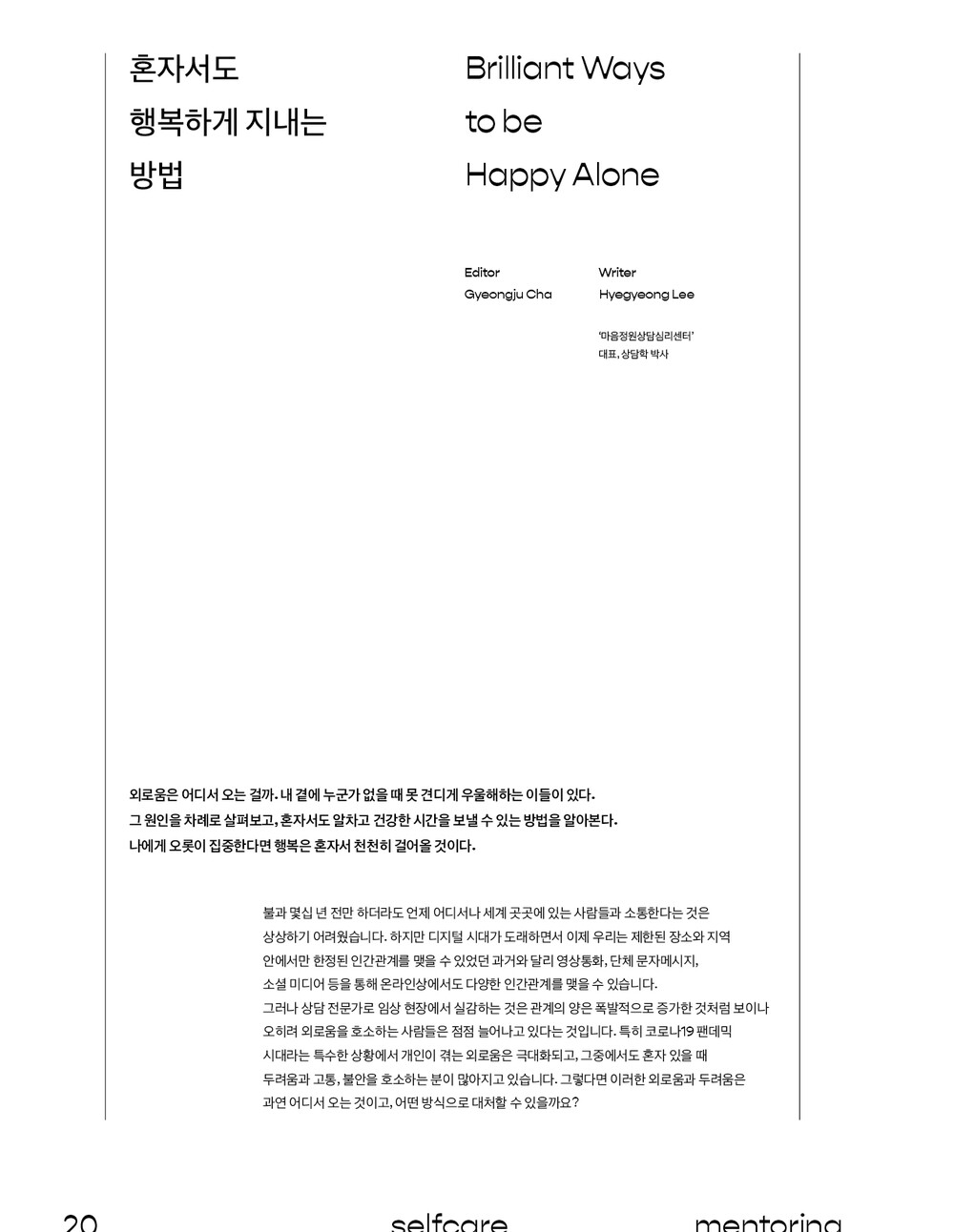 Mentoring|혼자서도 행복하게 지내는 방법_심리상담가 이혜경