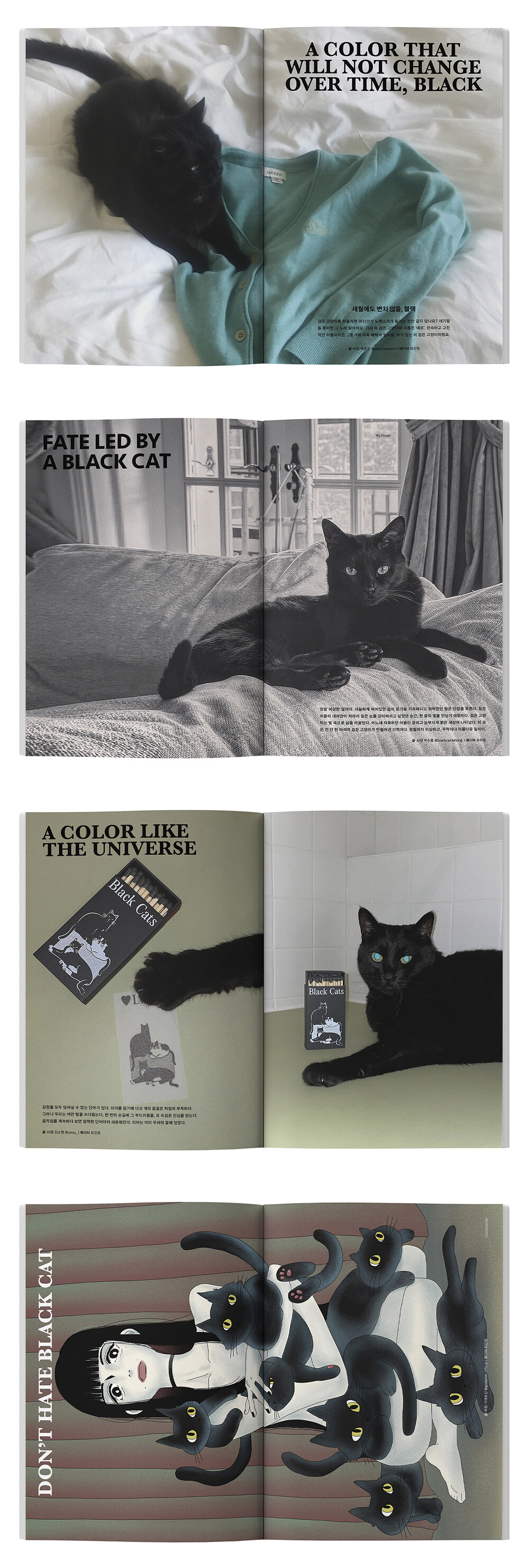 그런데 우리는 신비함을 오래 견디지 못하는 것 같다. 신비함은 ‘이해할 수 없음’ ‘익숙하지 않음’ ‘낯섦’을 뜻하며 그런 것들은 항상 미움을 받아왔다. 규정하기 어려운 존재에 미워하는 마음을 더하자 지옥이 펼쳐졌다. 이번 호를 만들면서 얼마나 많은 고양이들이 검은색 옷을 입었다는 이유만으로 죽음에 내몰렸는지 알게 되었다. 어쩌면 무엇이든 분명하게 만들려는 마음이 폭력일지도 모른다.