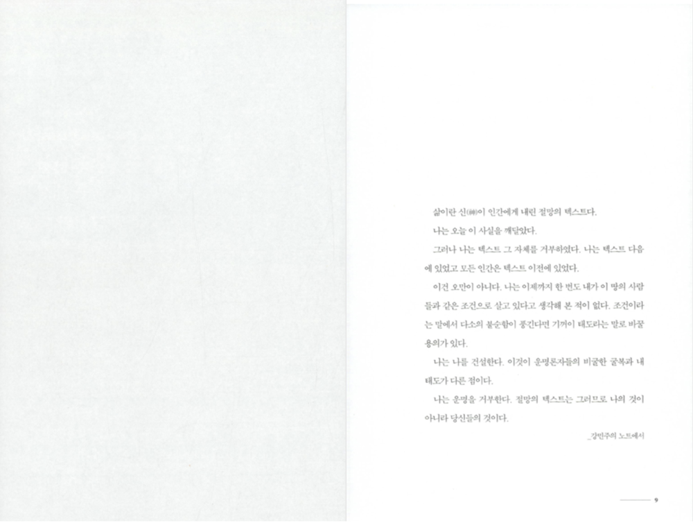 절망의 텍스트는 그러므로 나의 것이 아니라 당신들의 것이다.