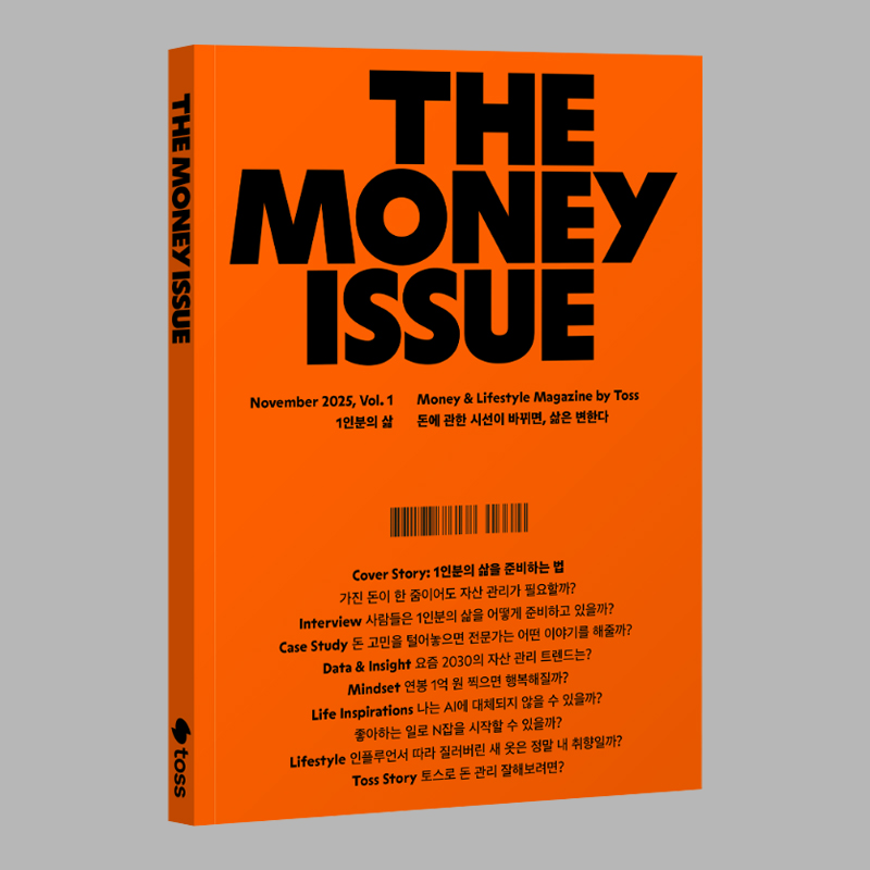 토스의 전작 《더 머니북》이 돈을 다루는 기초 체력을 길러주는 생존형 가이드였다면, 〈더 머니이슈〉는 그 다음 질문을 던진다. “돈이 내 삶에 어떤 존재여야 할까? 건강한 관계를 위해 어떤 지식과 마인드셋을 가져야 할까?” 스마트폰을 수없이 스쳐 지나는 정보의 흐름 속에서, 책은 여전히 가장 깊이 있는 사유의 매체다. 내가 직접 페이지를 펼치고 행간에 떠오르는 생각까지 소화해야 하기 때문이다. 이 주체적인 독서의 경험은 곧 스스로 금융생활을 설계해 나가는 힘과 닮아 있다. 토스는 이러한 믿음 아래, 평소보다 조금 더 시간을 들여 독자들과 깊은 대화를 이어갈 시리즈를 시작한다. 잘 모른다는 이유로 막연히 두려워하기보다 한번쯤 파고들어 보고, 무심하게 흐르는 대로 두기보다 나만의 기준을 세우는 삶. 〈더 머니이슈〉는 그러한 변화를 돕는 작은 촉매제가 되고자 한다.