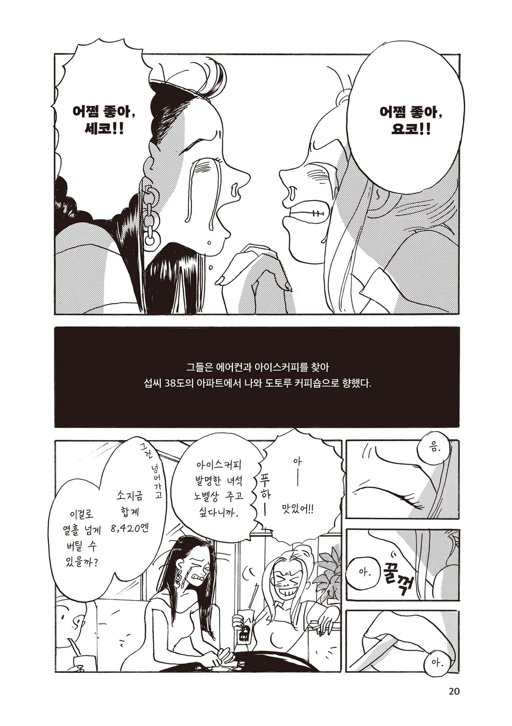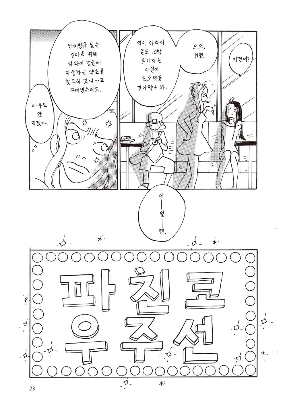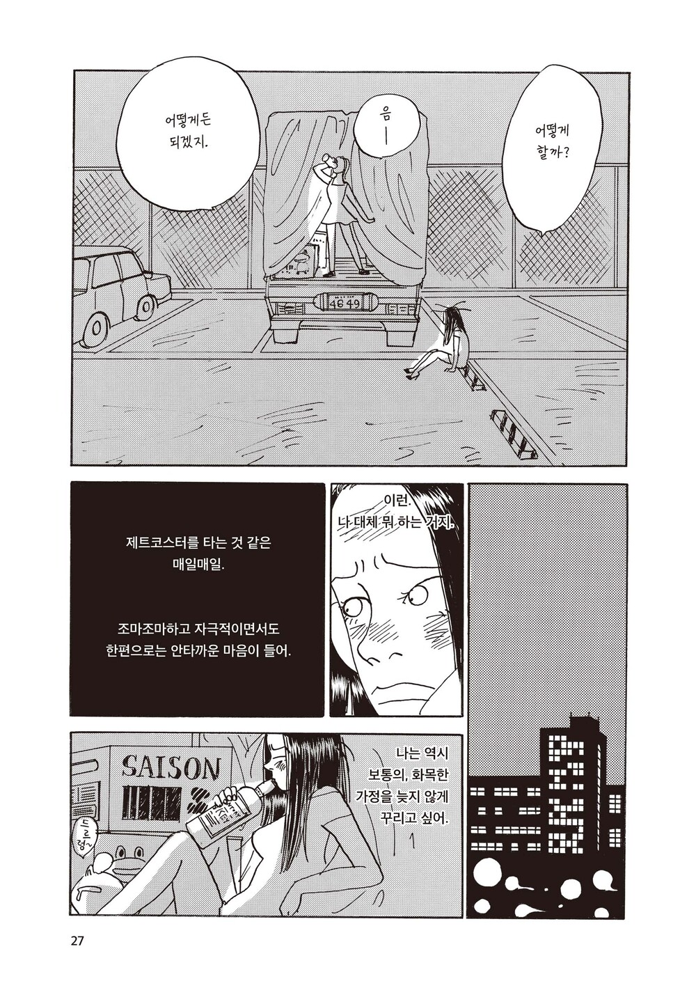 친구를 낯설게 느끼는 때는 언제일까. 애를 써도 이해할 수는 없다고 건성으로 고백하는 듯한 거친 펜선으로 그려진 단편. 진심이 지나쳐 페르소나가 단 한 개인 사람은 여지없는 지옥이라고 말하는 이야기를 고작 스무 페이지로 압축하는 작가의 건성은 차라리 담력에 가깝다.