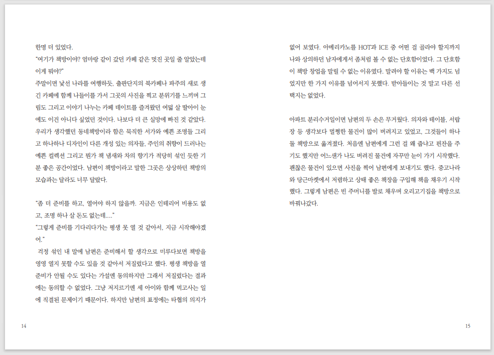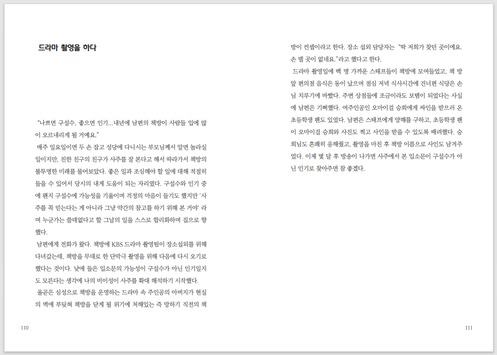 옆에서 고군분투하는 아내의 고민 그리고 오래된서점만의 방식으로 위기를 살아가는 모습이 담겨있습니다.