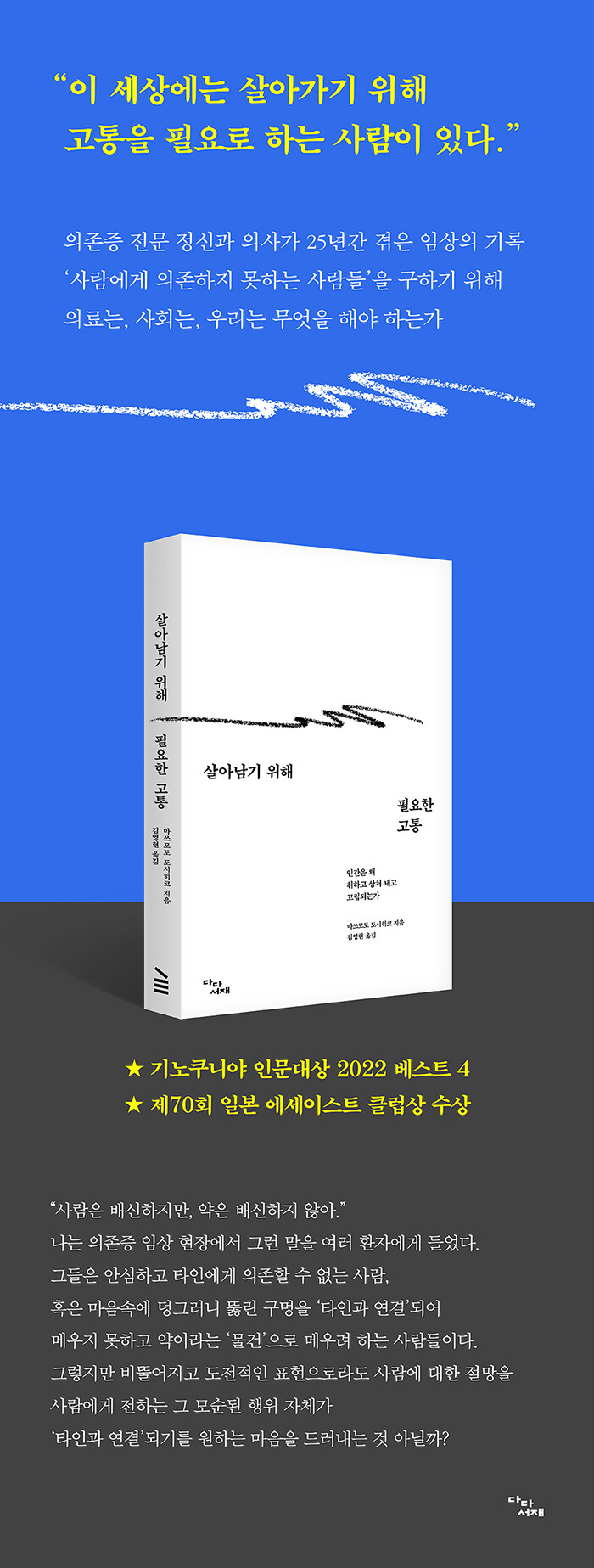 『살아남기 위해 필요한 고통』은 약물 의존증 최고 권위자인 일본의 정신과 전문의 마쓰모토 도시히코가 쓴 에세이다.