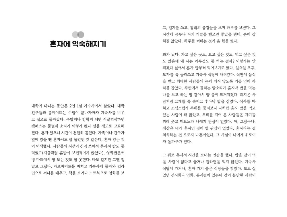 자신을 키워나간다는 생각으로 혼자에 익숙해지는 연습을 했고,