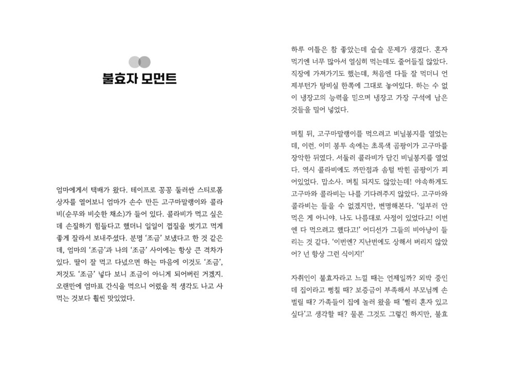 이 책이 혼자 살고 있는 도시의 우연한 여행자들에게 작은 위로와 웃음이 되기를 바란다.