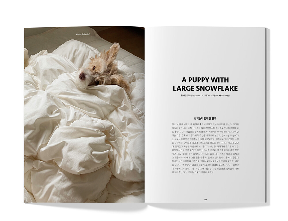 지난 20년 동안 한결같이 반려동물의 삶을 이야기한 MAGAZINE C/P가 새로운 이름과 가치관을 담은 <mellow cat/dog>으로 첫 인사를 드리게 되었습니다. ‘mellow’는 ‘긴장을 풀고, 삶 속의 단순하고 자연적인 즐거움을 조용히 즐기는 상태’라는 의미를 가지고 있습니다. 동물들은 그저 살아감으로써 이 긴 문장을 직관적으로 보여주곤 합니다. 저희는 그들이 주는 순수한 사랑과 웃음, 편안함과 함께하며 우리는 mellow 한 행복감을 느끼게 되는데요. <mellow>가 담아낼 반려인과 반려동물의 삶을 통해 저희 매거진을 보게 될 모든 분들이 이 행복감을 함께 느끼길 바랍니다.