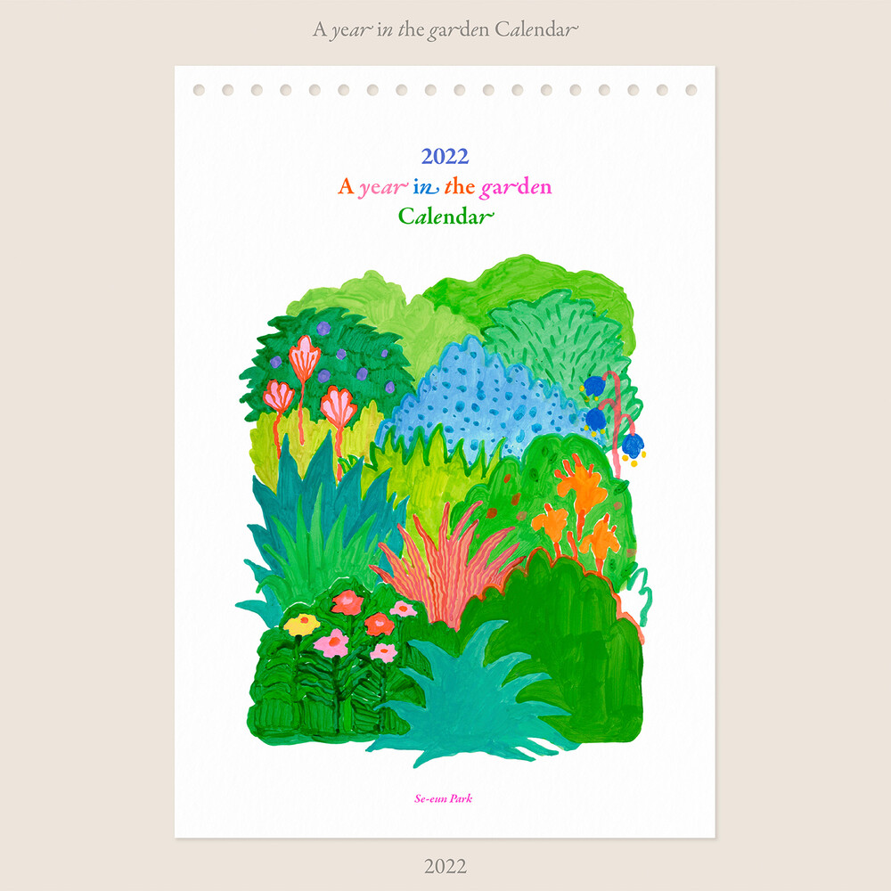 사계절 내내 아름다운 정원의 모습을 담기 위해 아름다운 특수 인쇄로 제작했습니다. CMYK에서 M(마젠타)와 Y(옐로우)를 별색으로 바꿔 연초록빛 새싹의 싱그러움과 화려한 가을꽃의 강렬함을 그대로 담았습니다.
