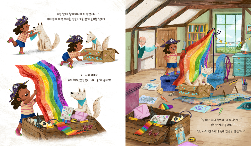 무지개 깃발의 의미에 대해 묻고, 할아버지가 젊을 적 즐겼던 무지개 축제에 대해 들으며 밀리도 무지개축제에 가고 싶어지는데요.
