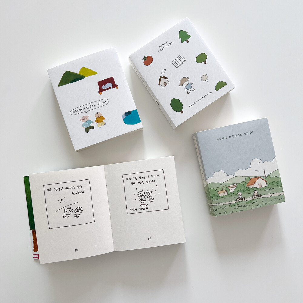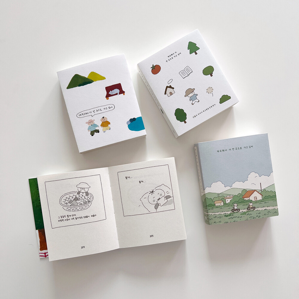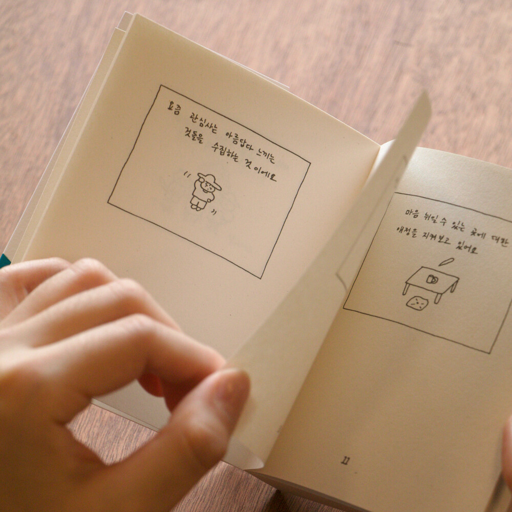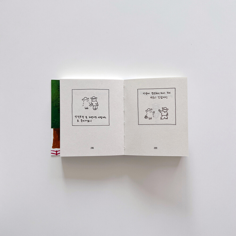 작가로서의 딜레마, 좋아하는 공간, 타인과의 관계, 전진하고 싶은 바람, 기다리는 계절까지 서로 다섯 번 주고받는 편지 속에 두 사람이 가진 속 깊은 감정들이 포근한 방식으로 들어 있습니다. 계속해서 더 먼 곳으로 가고 싶어 하는 두 사람이 여기 모여 이야기를 나눕니다. 손에 잡히는 작고 가벼운 포켓북 스타일로, 나 자신의 안부가 궁금하거나, 좋은 대화가 필요할 때 펼쳐 읽기 좋습니다.