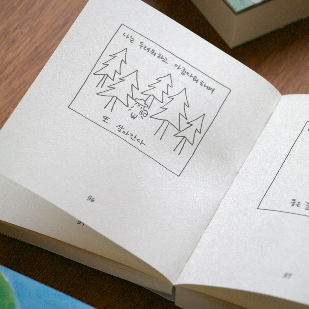 “하지만 나는 오늘도 나무가 되고 싶어. 그러다 보면 나무로 봐주는 사람도 있지 않을까 생각해. 나는 내 마음의 공간이 고요해져서 편하게 쉴 수 있는 곳이 되었으면 해.”