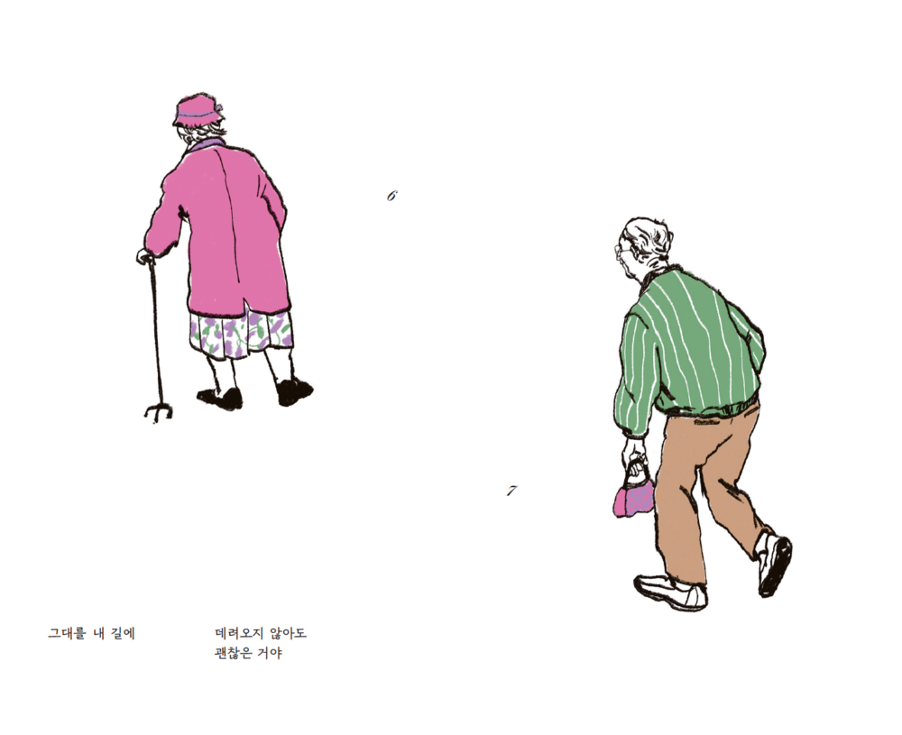 수많은 노래가 “넌 나의 것이야”를 말할 때 <사랑을 한다는 건>의 노랫말은 “넌 너의 것이야”라고 말한다. 사랑이라는 이름표를 달았다는 이유로 함부로 하는 모습이 아닌, 사랑이라는 이름표를 달았기에 서로의 존재를 더욱더 존중하는 사랑을 말이다. 서로에게 자신의 욕심을 요구하는 사랑보단, 함께 같은 곳을 바라보며 목소리 를 모으는 사랑. 그 당연한 사랑과 아름답고 벅찬 그림이 『사랑을 한다는 건』 독자들에게 묻는다. 사랑을 한다는 건, 무엇일까요?, 그리고 이 책은 넌지시 말한다. 사랑을 한다는 건, 그대를 내 길에 데려오지 않아도 괜찮은 것이라고.