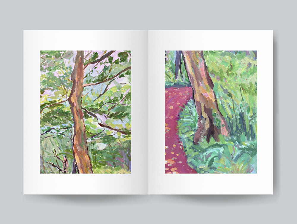 드로잉, 페인팅과 함께 나무를 그리는 과정과 완성 이후에 그림을 보며 작업에 대한 의미를 찾고 스스로를 돌아보는 과정에 대한 짧은 일기 형식의 글이 함께 수록되어 있습니다.