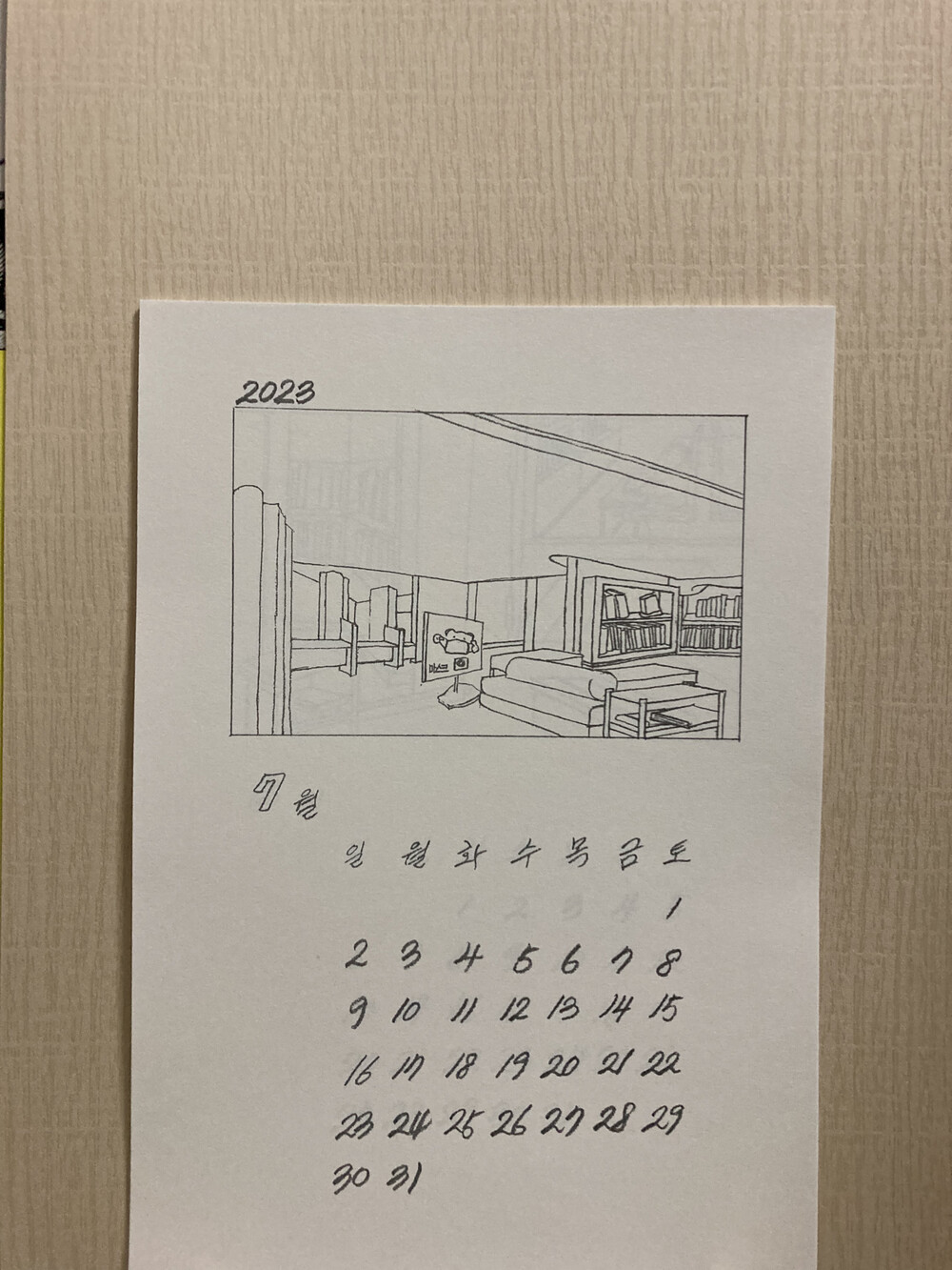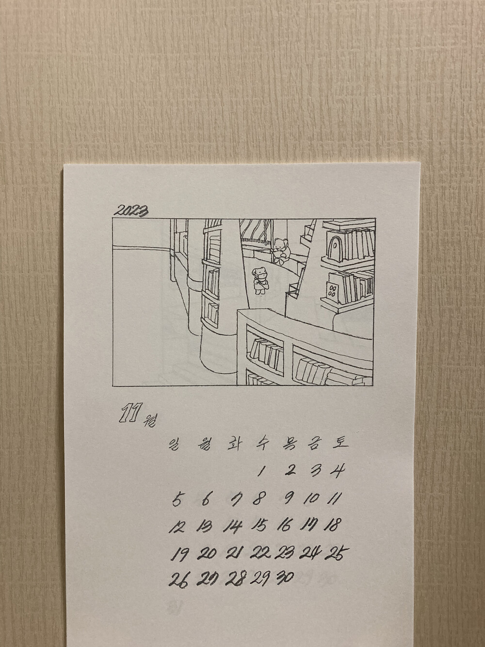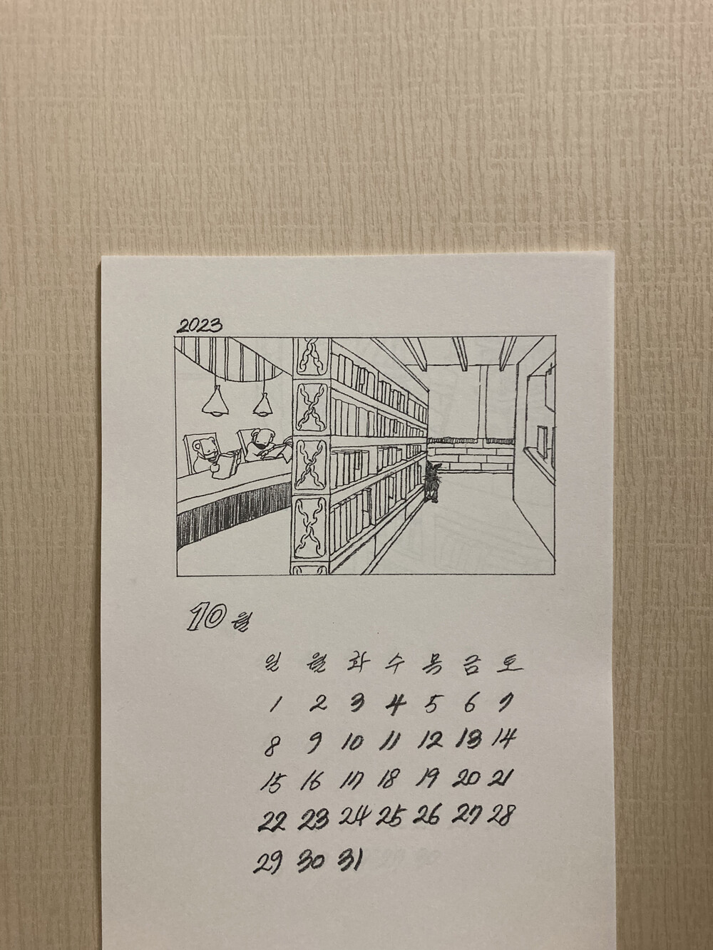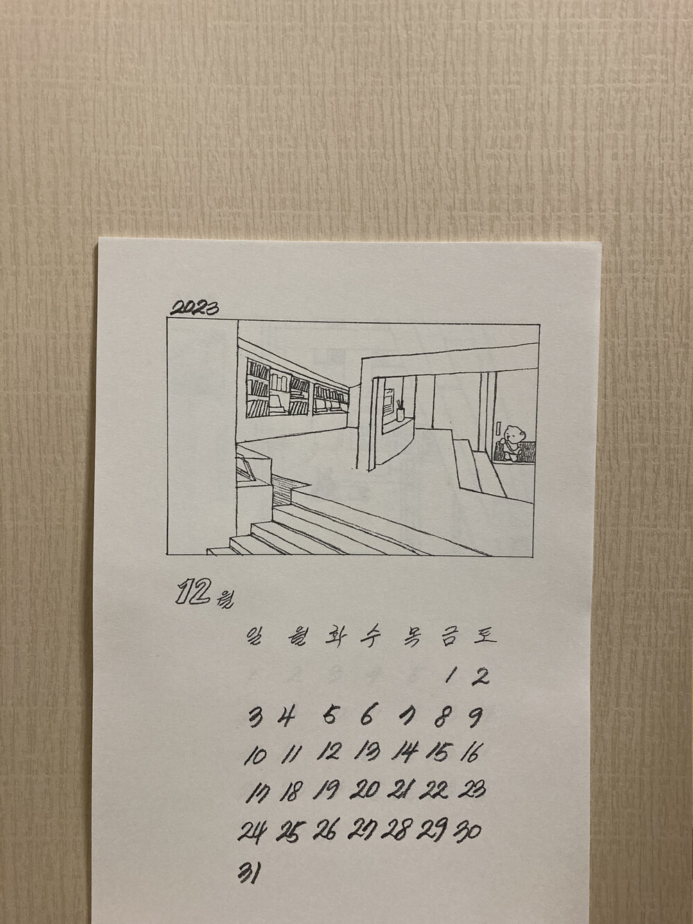 2023년도 그림달력은 도서관을 테마로 그려보았습니다.