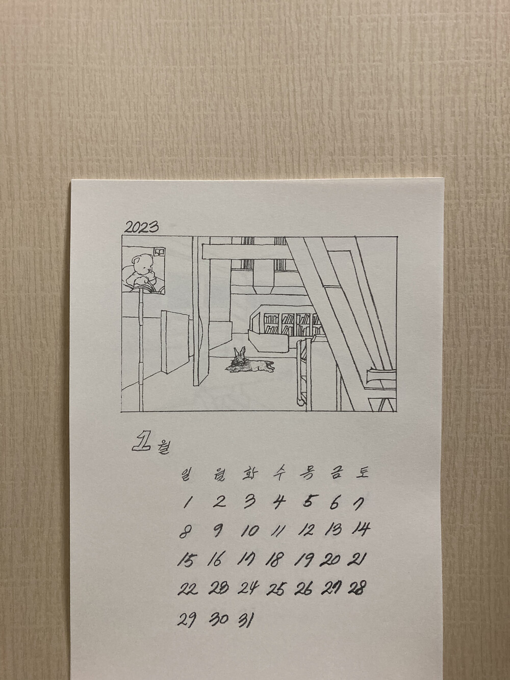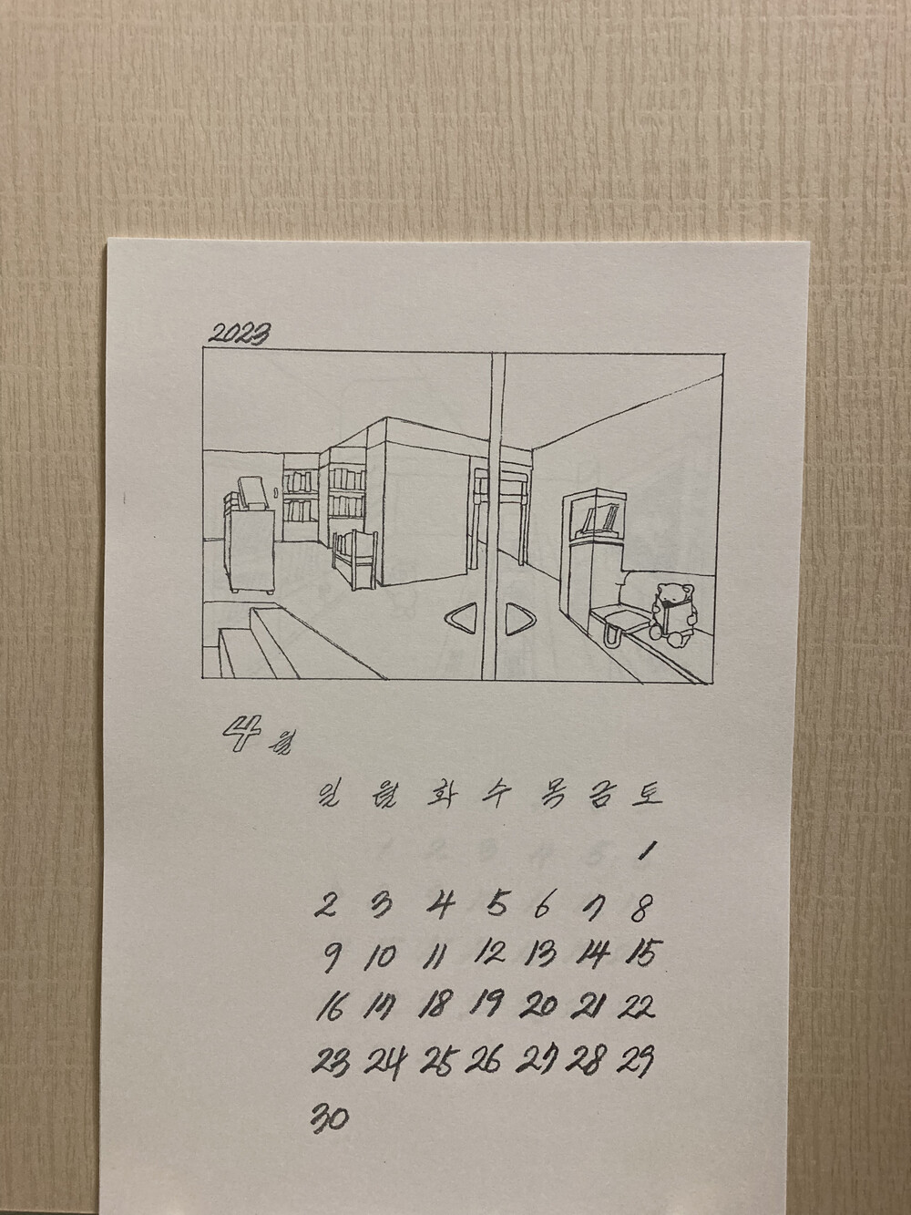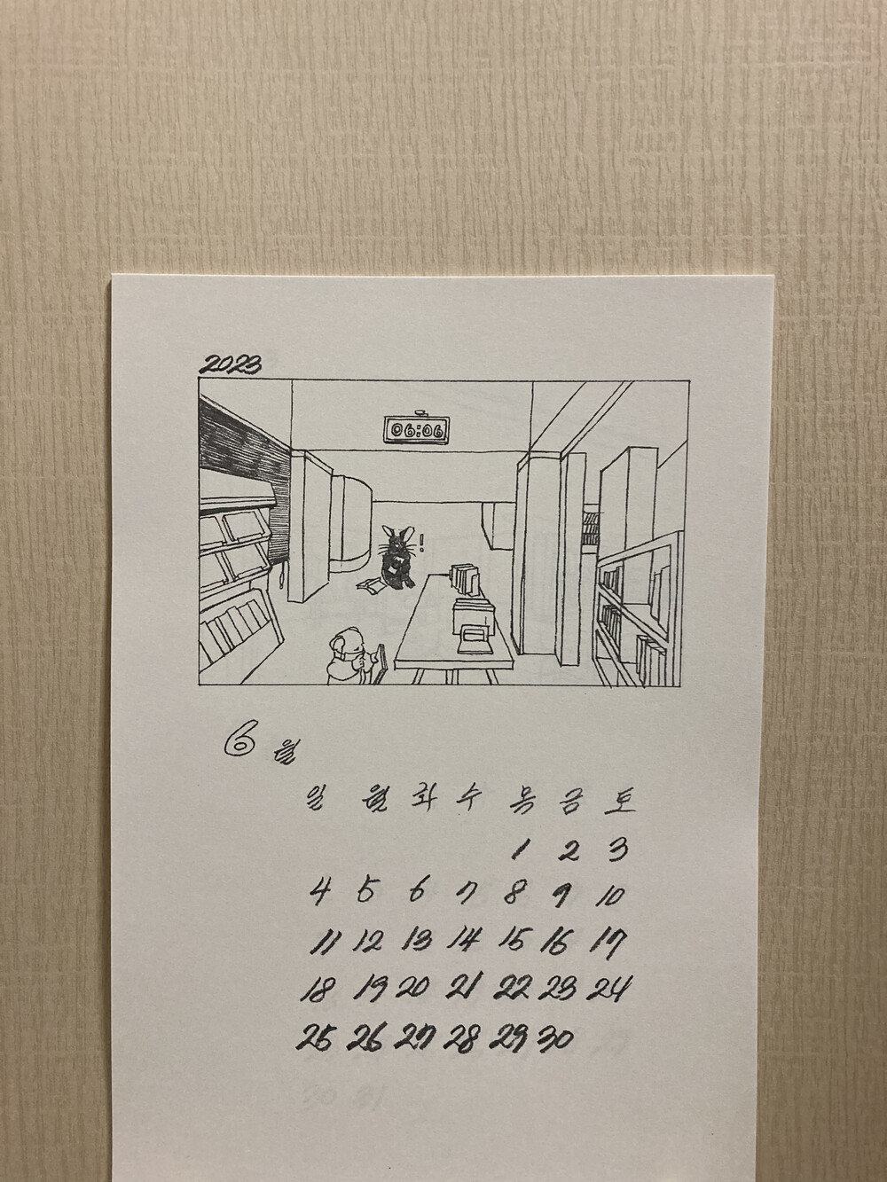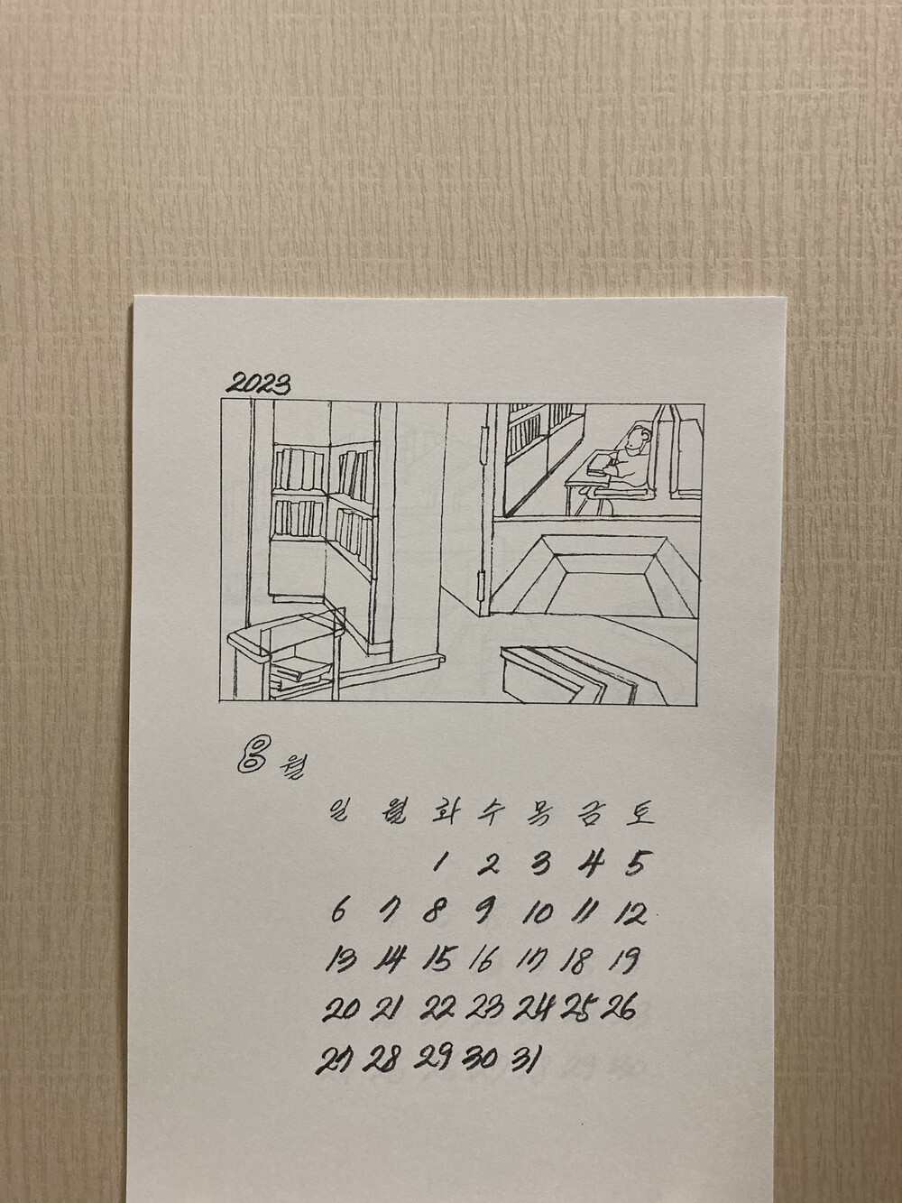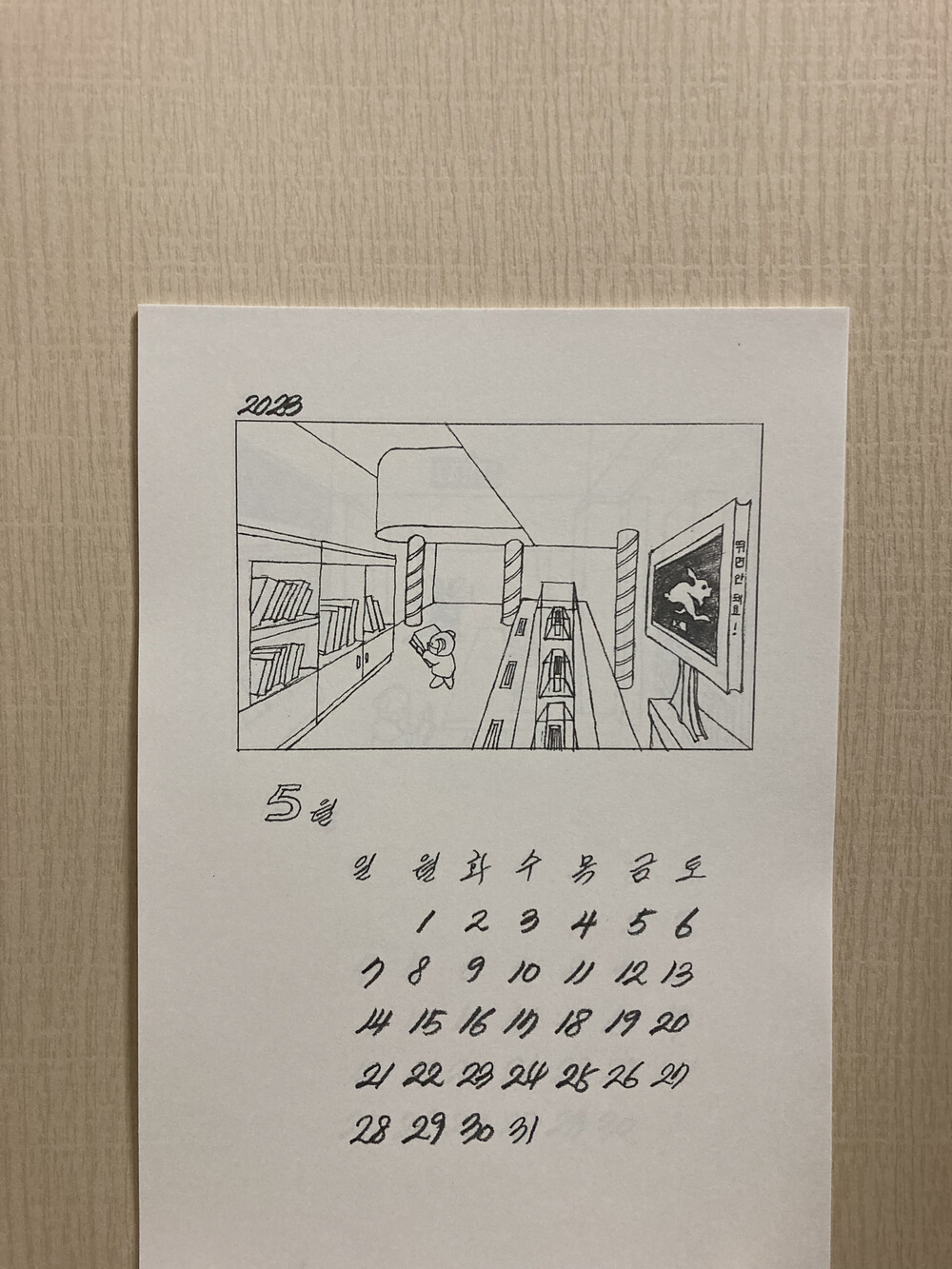 2023년도 그림달력은 도서관을 테마로 그려보았습니다.
