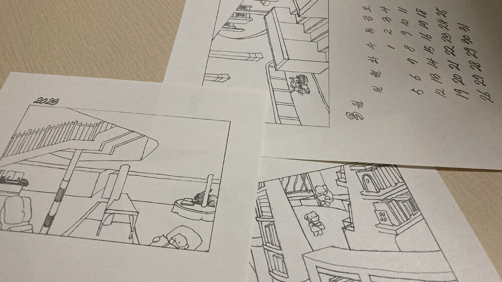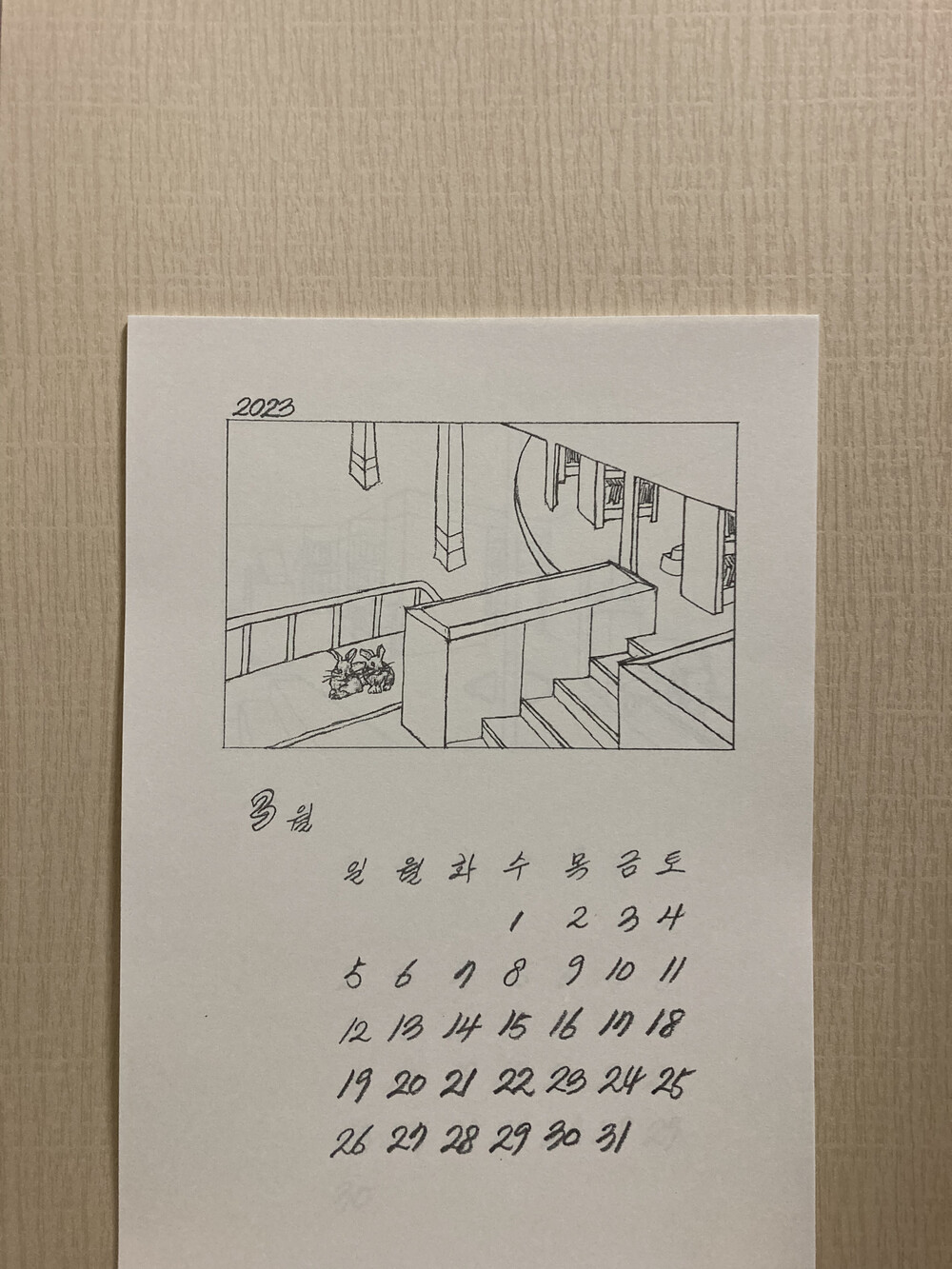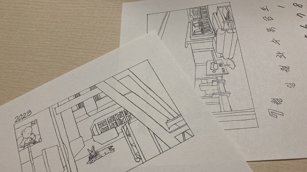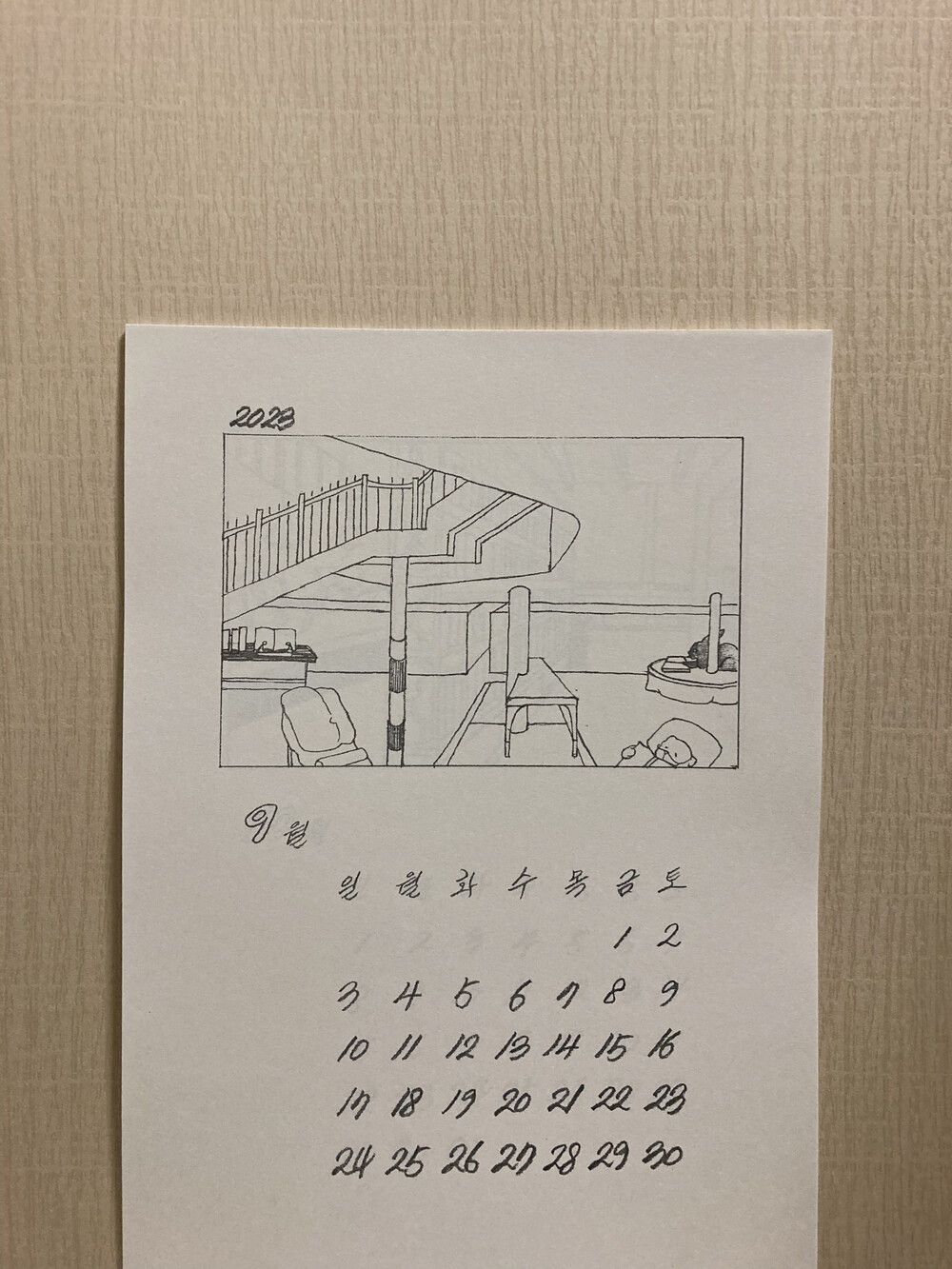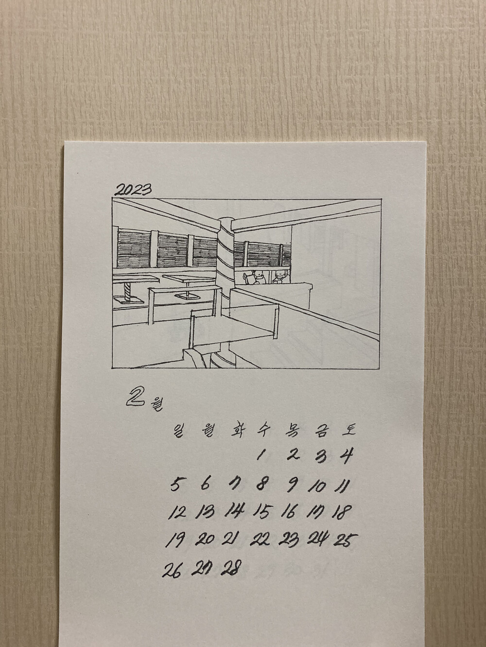 2023년도 그림달력은 도서관을 테마로 그려보았습니다.