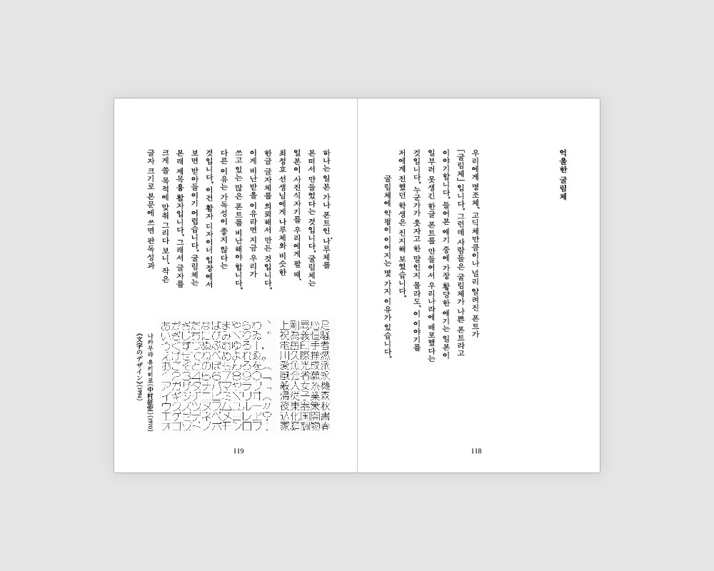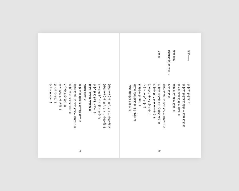 한글을 생각하면 무엇이 떠오르나요? 오랜 시간 한글을 연구하고 그려온 이용제가 그동안 끄적인 생각을 모아 <한글생각>이라는 책을 냈습니다. 조금은 낯설지만 이 책은 세로로 읽습니다. 처음에는 분명 어색하겠지만 점차 익숙해져 저자의 발걸음을 또박또박 따라 걷듯 읽게 되고, 여러 번 반복해 읽다 보면 시냇물 흐르듯 유려하게 읽어내리게 되는 새로운 경험을 할 수 있습니다. 한글 조형의 맥을 잇고 우리 시각문화를 더욱 풍성하게 가꾸려 노력해 온 저자가 한글에 대한 애정을 담은 글은 무심히 한글을 바라보던 우리에게 작은 울림을 줍니다. 훈민정음에 담긴 세종임금님의 따뜻한 마음처럼 한 한글디자이너의 애정 어린 생각 또한 바람처럼 당신께 가 닿기를 바랍니다.