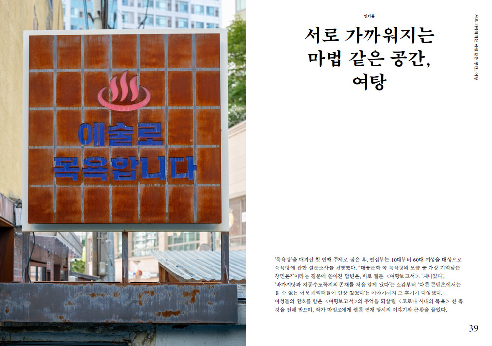 목욕하며 때를 밀듯 '여탕'에 대한 왜곡된 시선을 씻어 내고 고유한 기억을 되찾을 수 있기를 바랍니다.