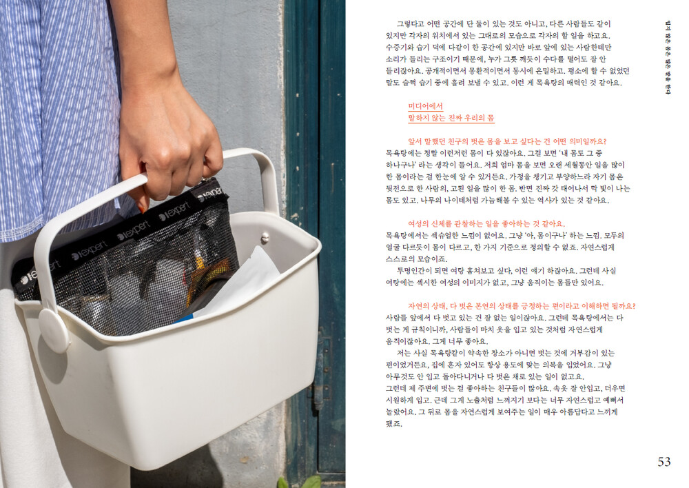 성적인 공간이자 금남의 구역이 아닌, 여성이 옷을 벗고 내 몸을 바라보고 서로의 등을 밀어주는 곳.