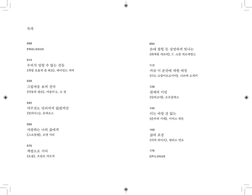 저자는 레이먼드 카버, 어슐러 K. 르 귄, 프란츠 카프카, 로맹 가리 등 10명의 소설가와 그들의 소설을 이야기하면서 직접 그린 10컷의 섬세한 수채화 일러스트와 함께 오늘도 무수 하게 지나치는 작지만 아름다운 일상의 표정을 ‘책’을 매개 삼아 선명한 인상으로 전한다.