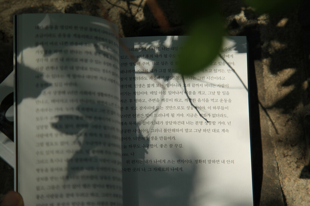 "지금은 어떻게 지내고 있냐고요? 잘 지내고 있습니다. 당연한 말로, 그때의 모든문제가 말끔히 해결된 미래란 없습니다. 저는 여전히 자주 아파하고, 도망치려 합니다. 다만 삶을 포기하기엔 하나씩, 발목을 잡는 것이 있더라고요. 당연했던 것들이당연하지 않게 느껴졌습니다. 사소하다 여겼던 것들이 사소하지 않았음을 깨달았습니다."