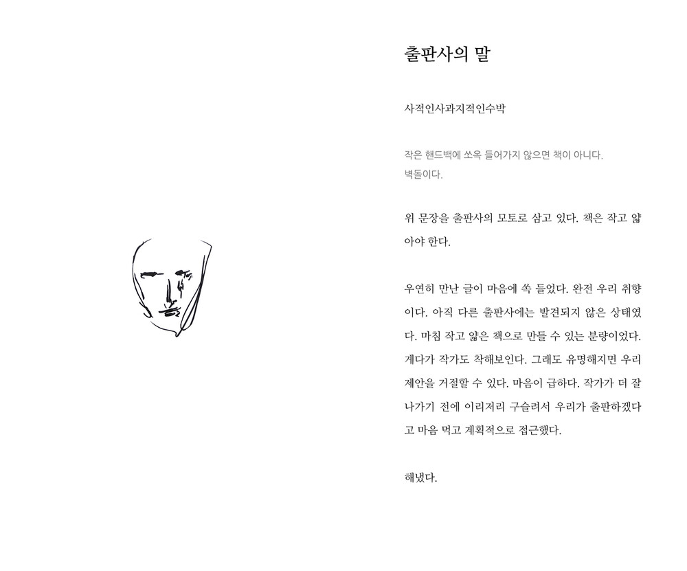 안녕하세요. 거의 1인출판사 [사적인사과지적인수박]입니다. 혼자글을 쓰고 책을 만들다가 이번에는 새로운 도전을 했습니다. 너무 마음에 드는 글을 찾았기 때문입니다. mopo라는 작가의 글을 만나고 아직 출판 계획이 없다는 걸 알게 되자마자, 제안했습니다. 내가 책으로 만들어보고 싶다!! 부, 부자가 되고 싶다!! 떨리는 손으로 설명 문구를 작성합니다. 힐링과 위로의 목소리로 난방이 잘 되어있는 에세이 시장에 신선한 바람을 불어일으킬 시니컬한, 냉장에세이입니다.
