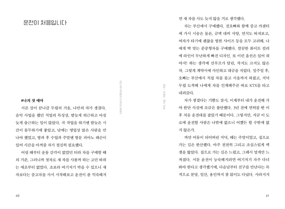 자동차란 존재는 다시 힘을 내게 하는 원동력이었고, 오롯한 나를 마주할 수 있도록 기회를 줬으며, 또 나를 내려놓는 은밀한 장소였다. 그래서, 잠시 쉴 수 있는 그런 곳. 위로받고 싶은 나에게, 자동차가 주는 위로는 참 따뜻했다.