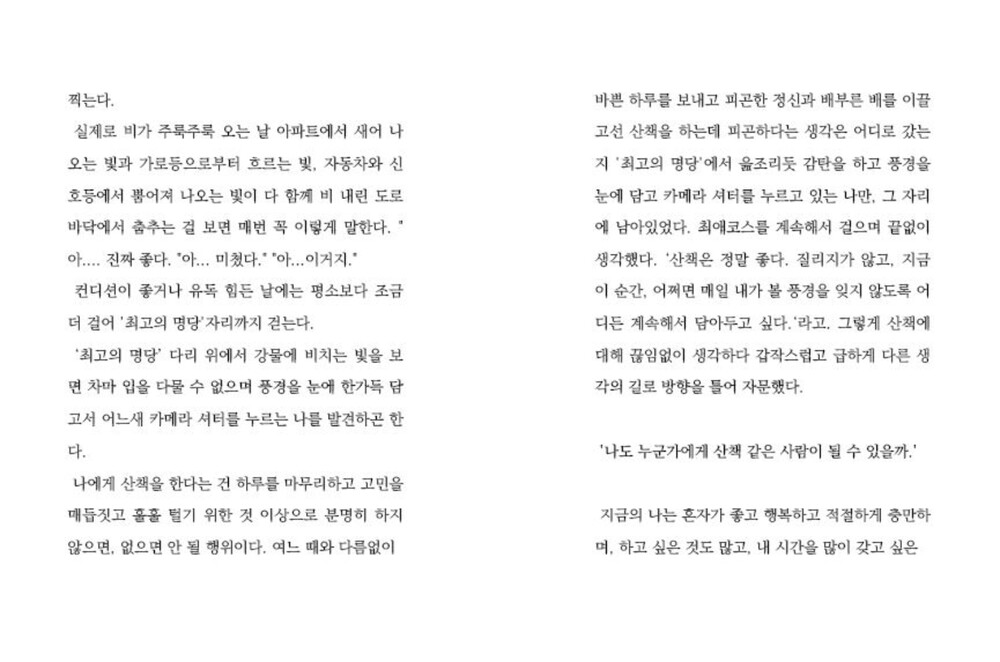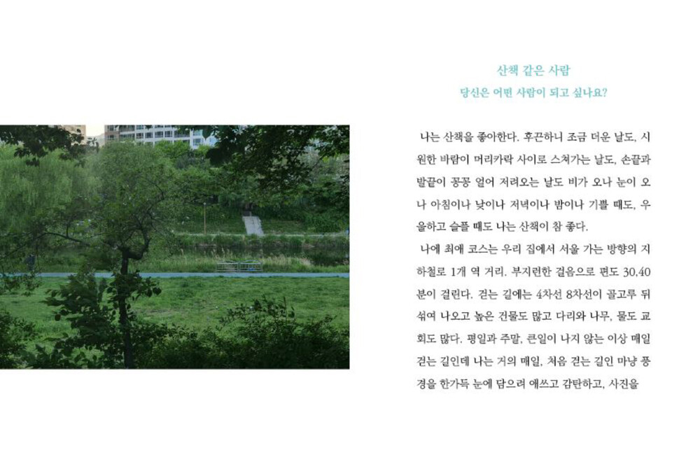 이 책속에는 산책을 하다 떠오른 생각, 촬영한 사진이 담겨져 있습니다.