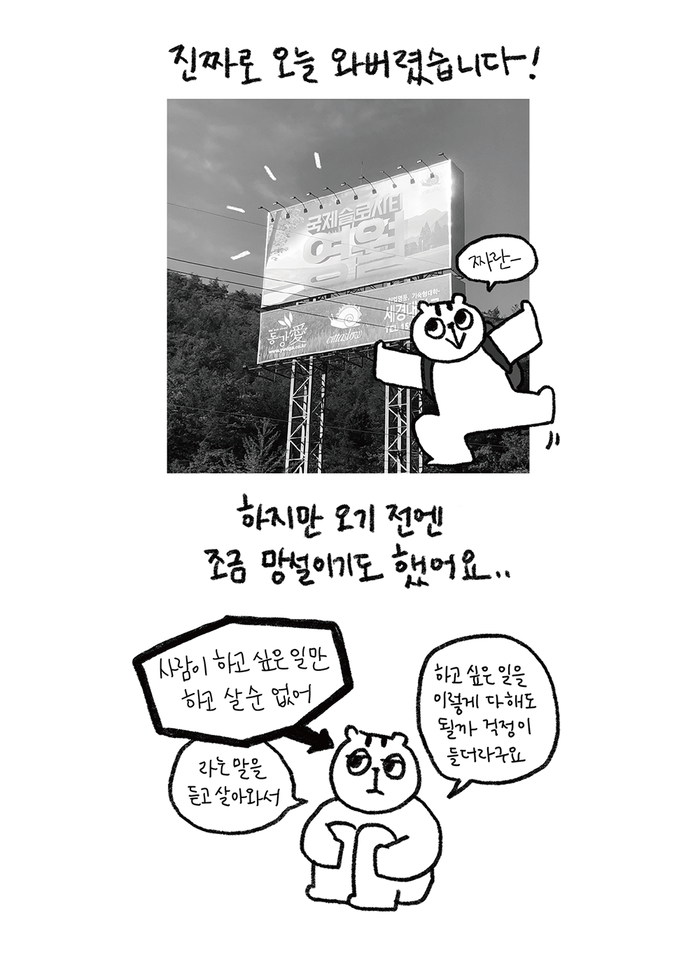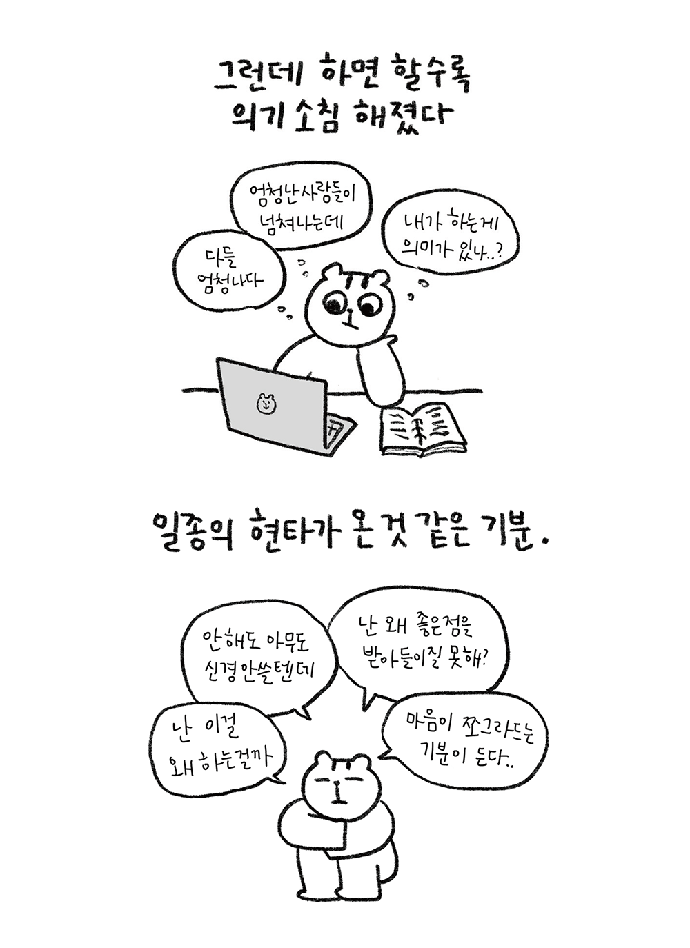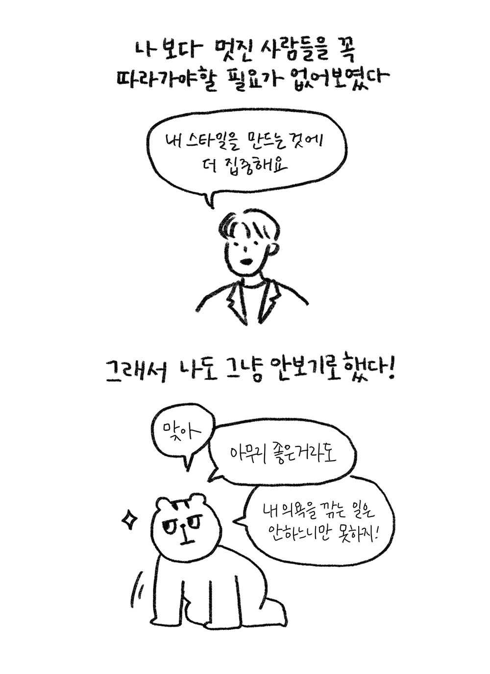 그럼에도 불구하고 ‘안 하는 것보단 낫지 않냐’는 마음으로 내 삶을 나만의 방식으로 살아가 보기로 했다.”