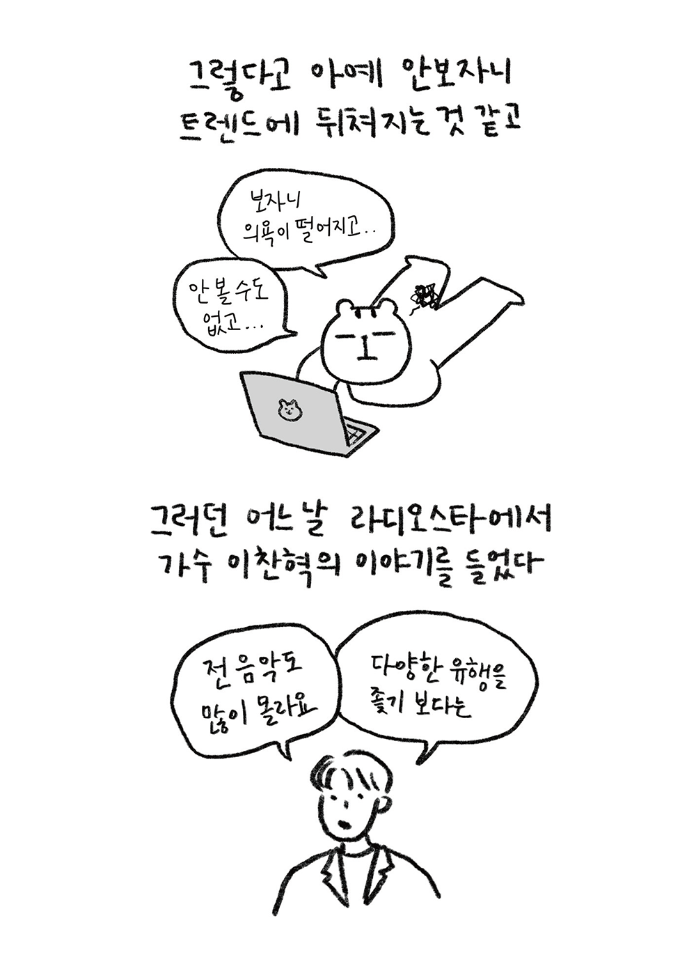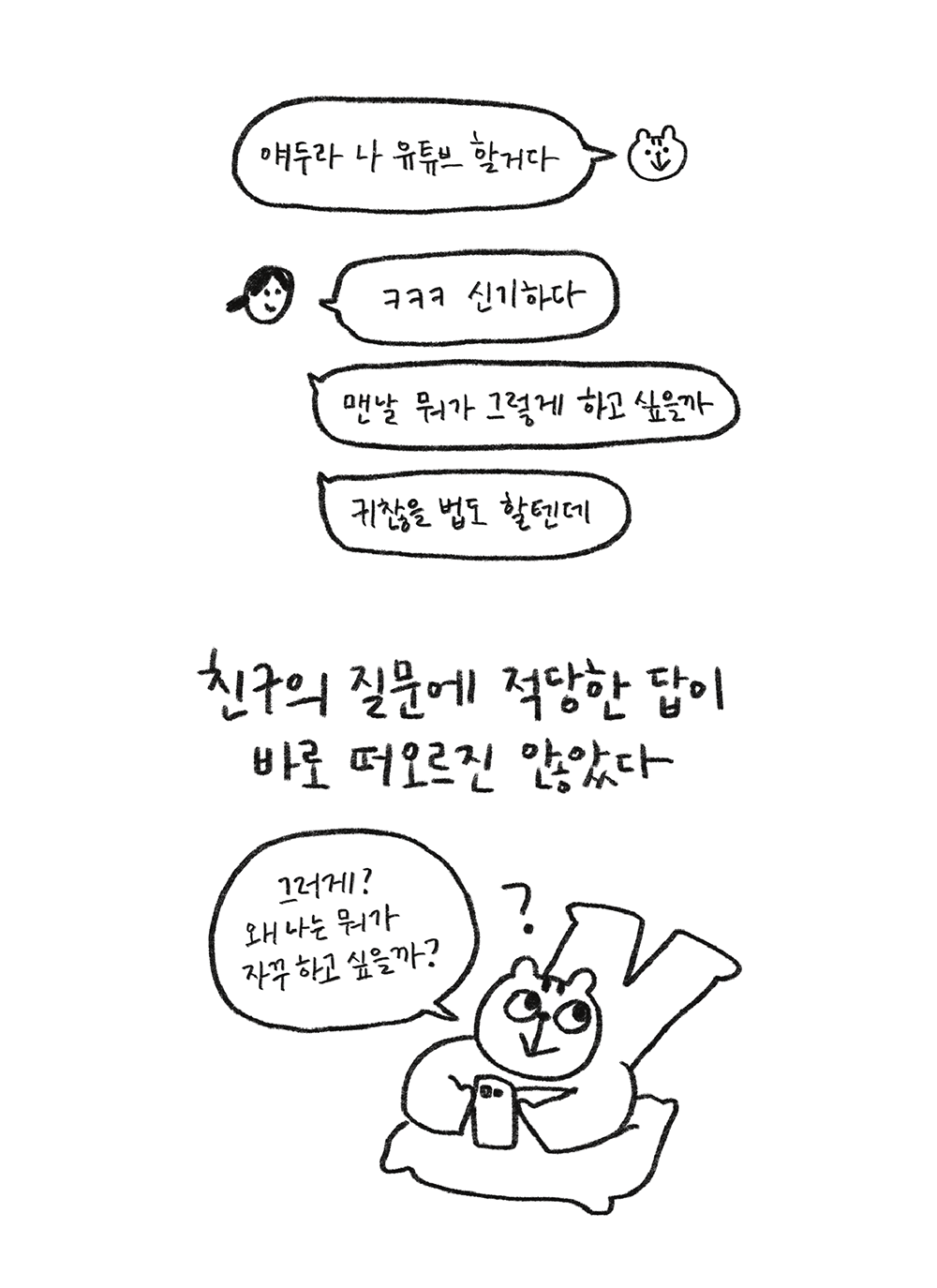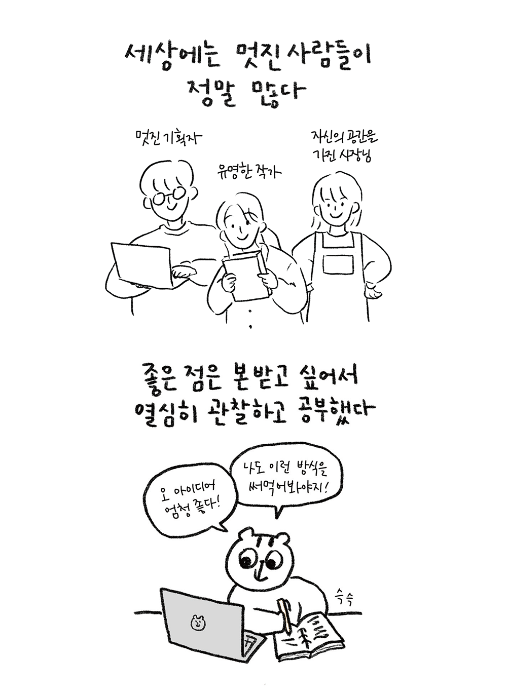 그럼에도 불구하고 ‘안 하는 것보단 낫지 않냐’는 마음으로 내 삶을 나만의 방식으로 살아가 보기로 했다.”