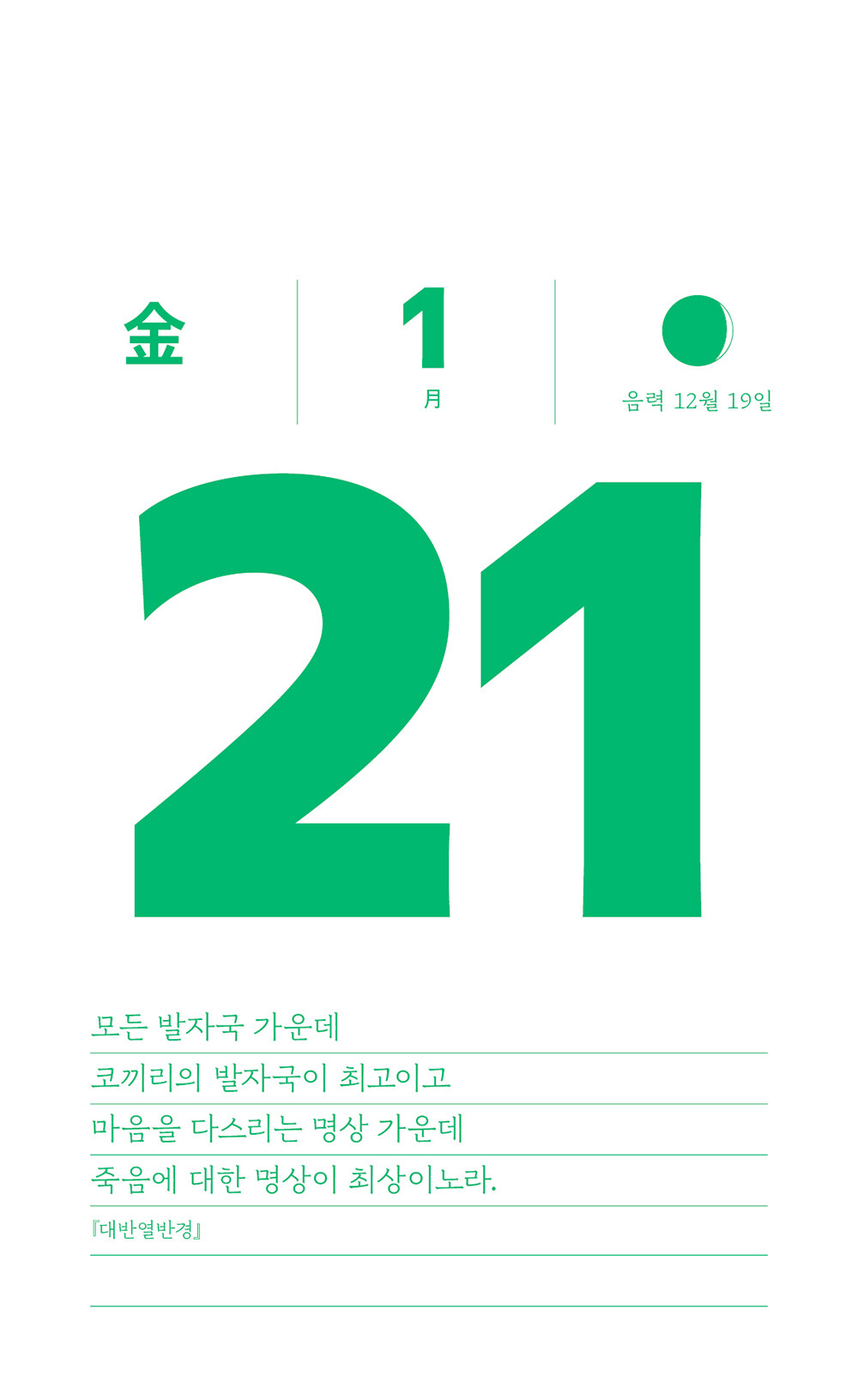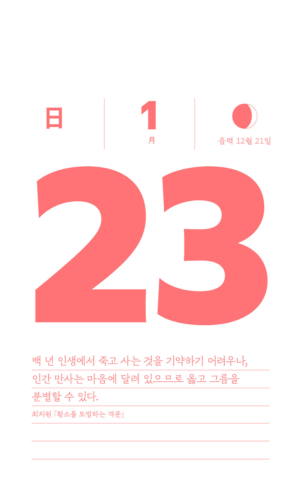 ➊ 매일 아침 일력 속 문장과 함께 하루를 시작합시다.