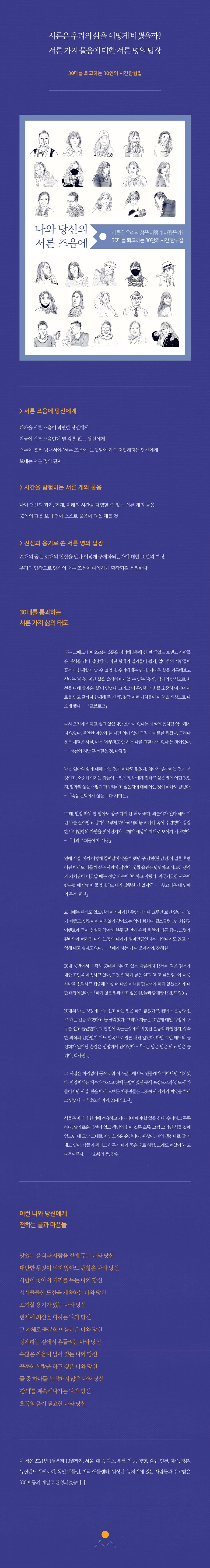 이 책은 서른 즈음이란 같은 시간을 다른 방식으로 탐험한 서른 명의 삶의 태도를 담고 있습니다. 우리의 다른 삶으로 당신의 다른 삶을 응원하겠습니다.